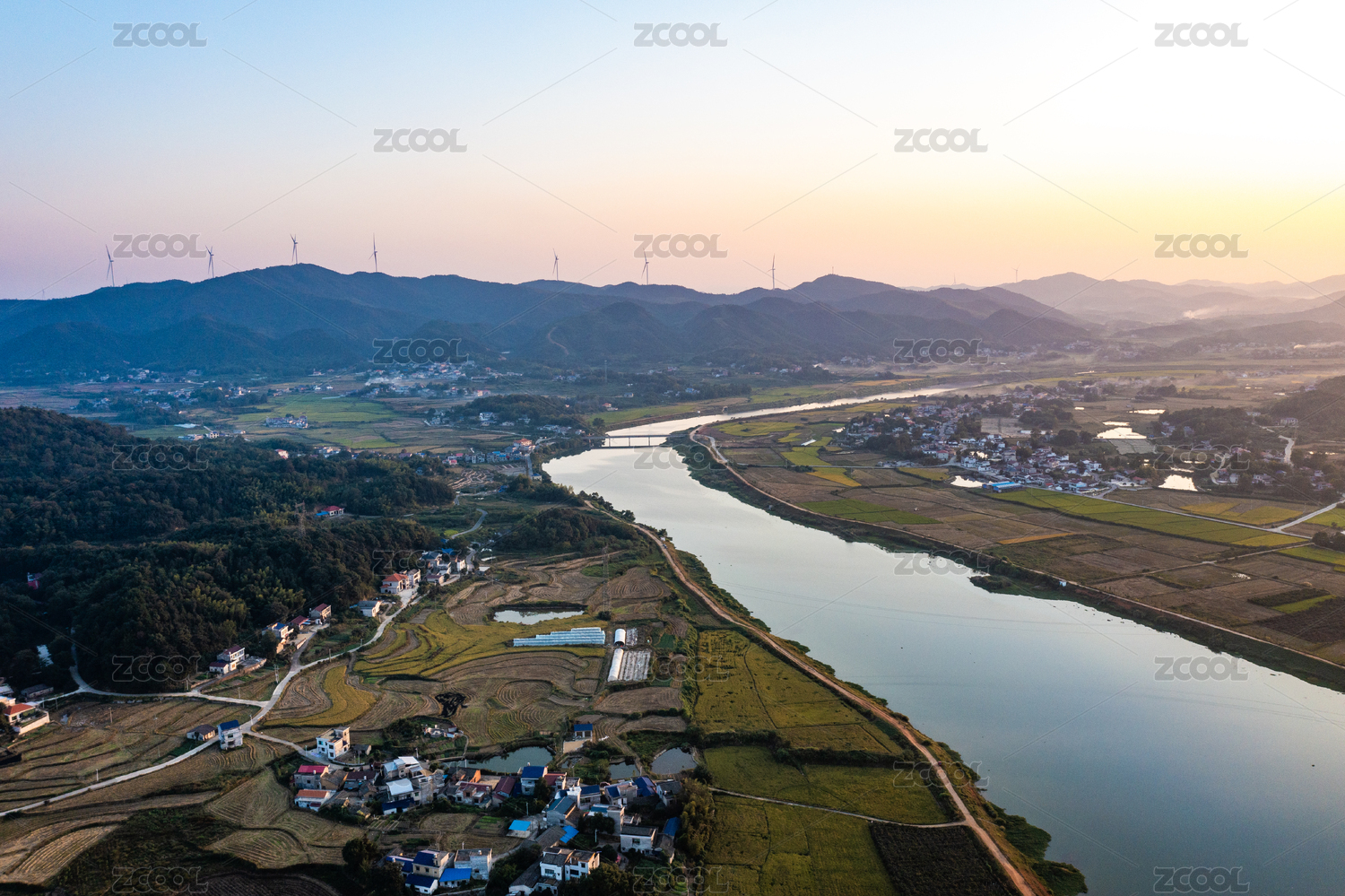 沩水,长沙,航拍,日落,夕阳,秋收,稻谷,稻田,丰收,宁乡