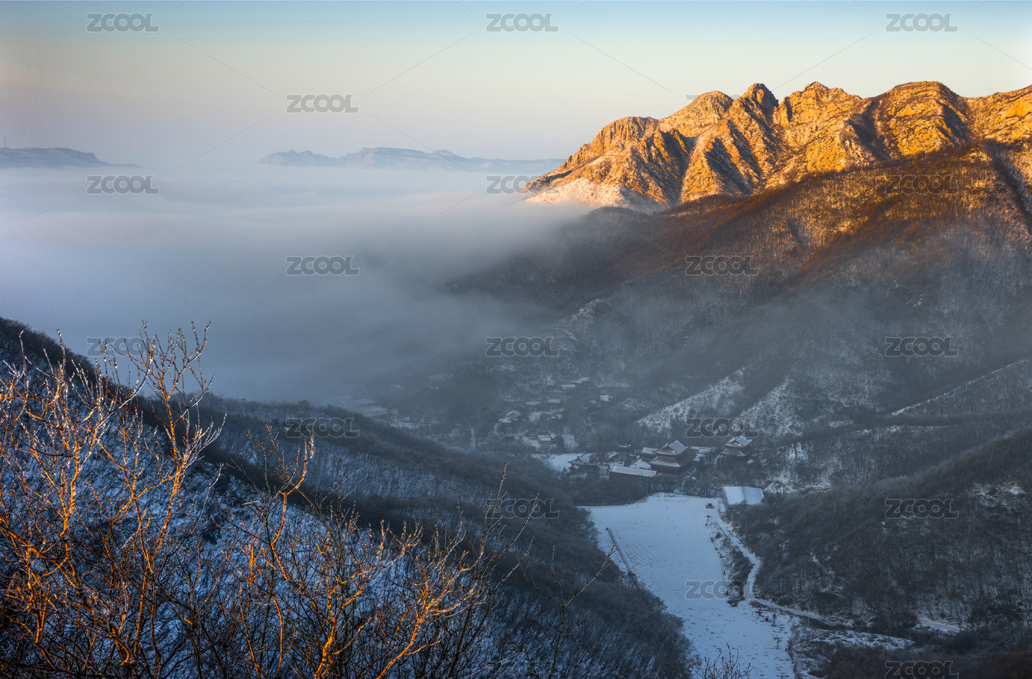 中国河南省禹州市大鸿寨初冬红叶云海冰雪