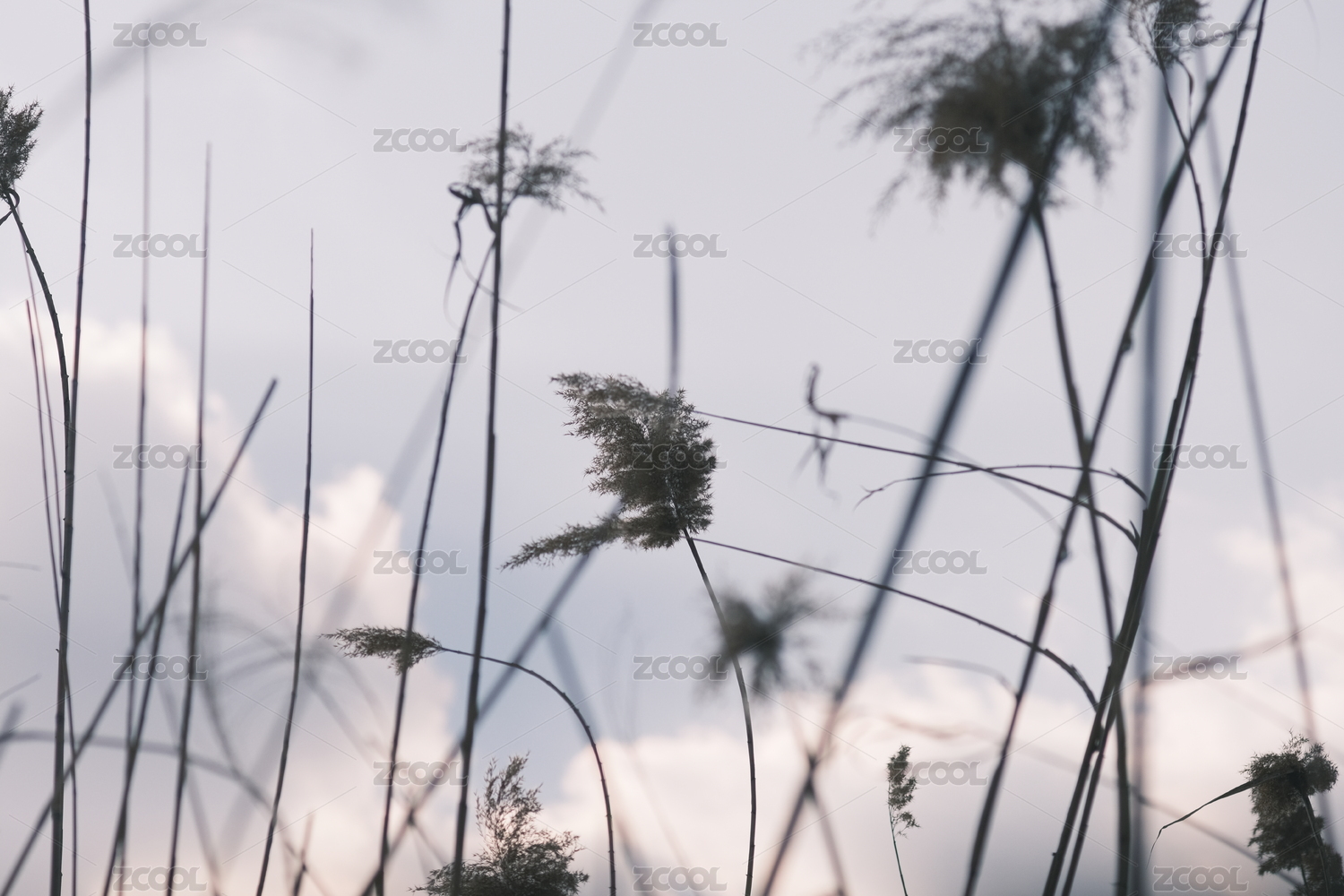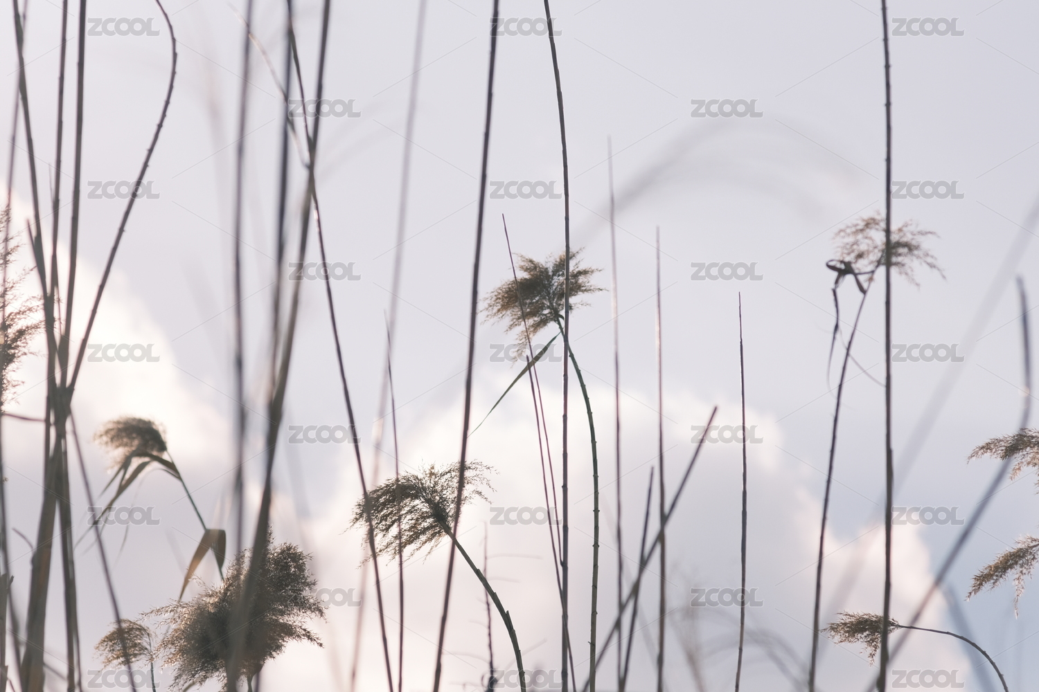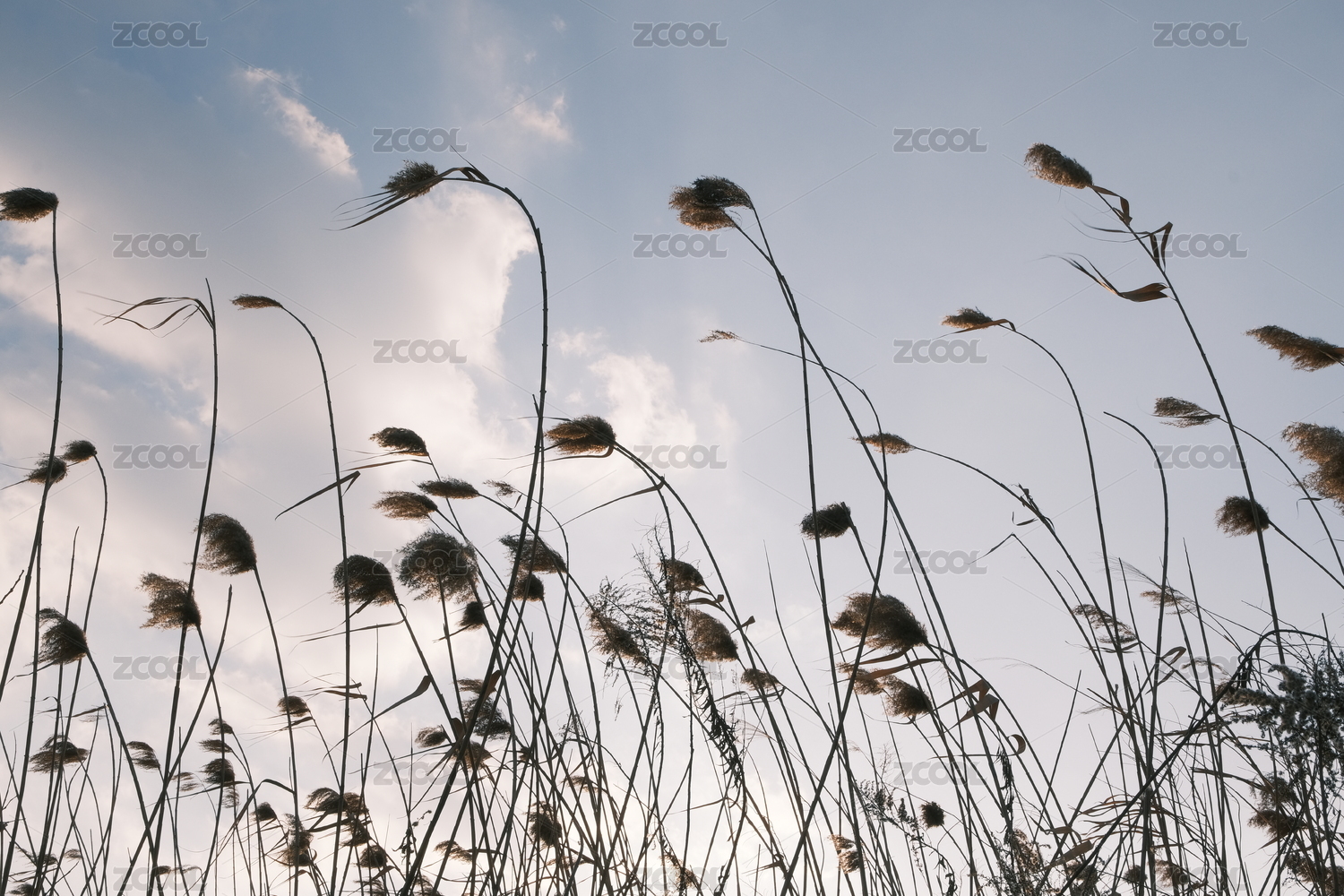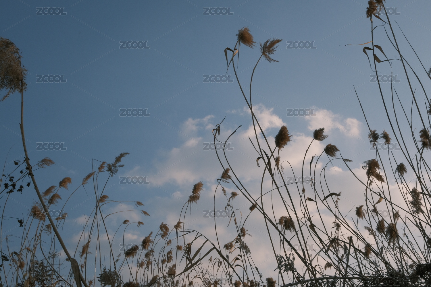 芦苇,枯萎,夕阳,摇摆,吹风,墙面,影子,白云