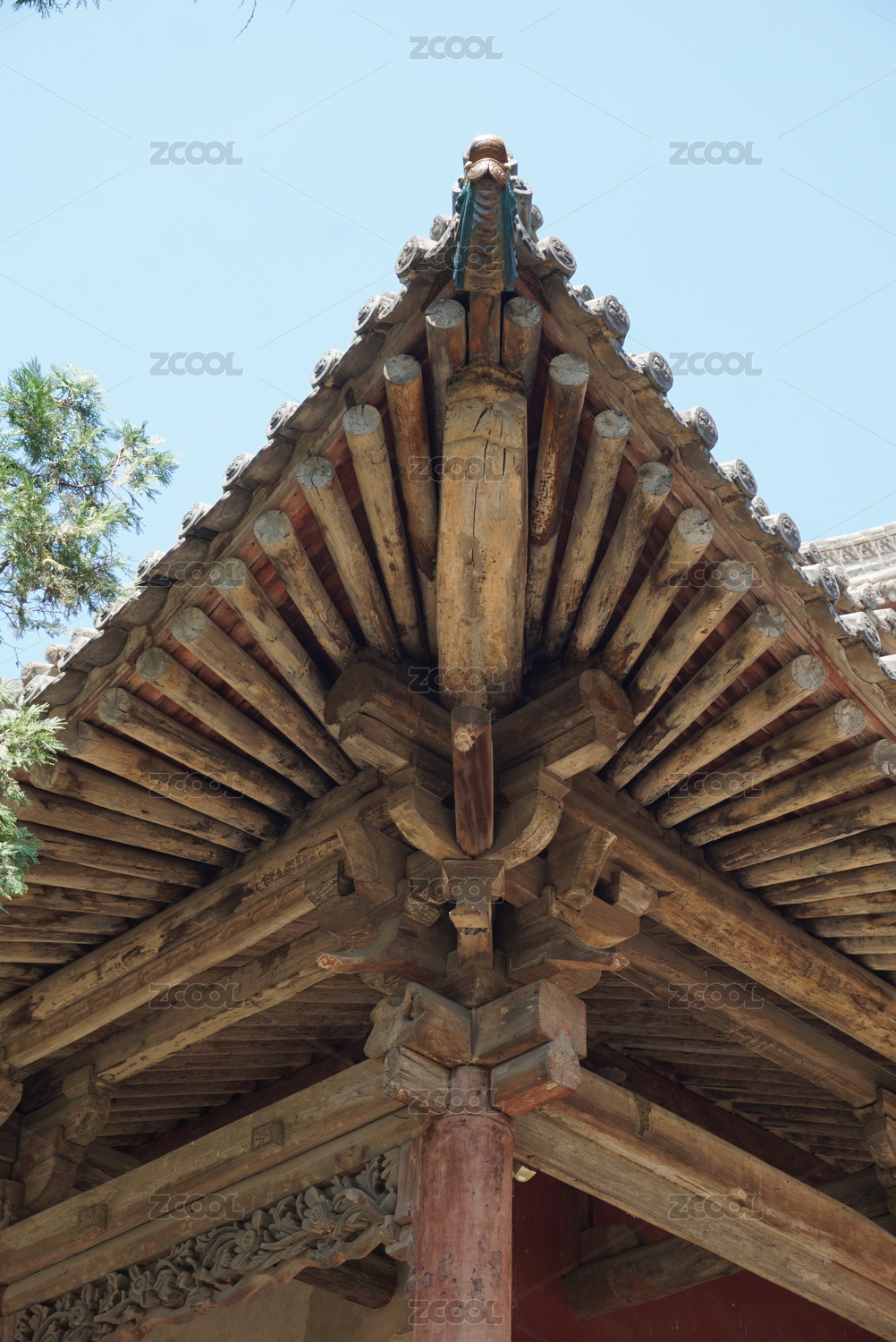 山西晋城古建筑飞檐斗拱上的装饰细节
