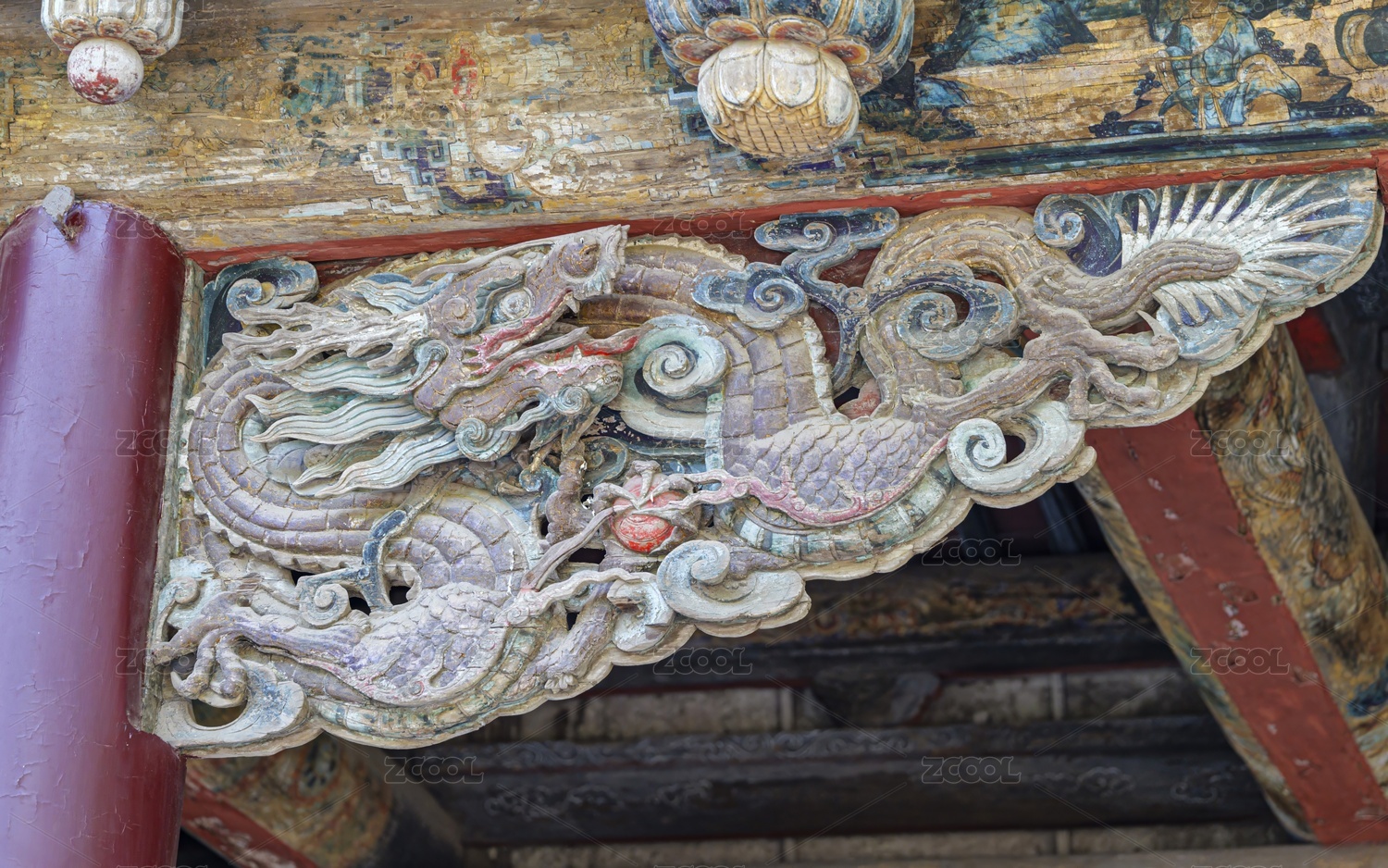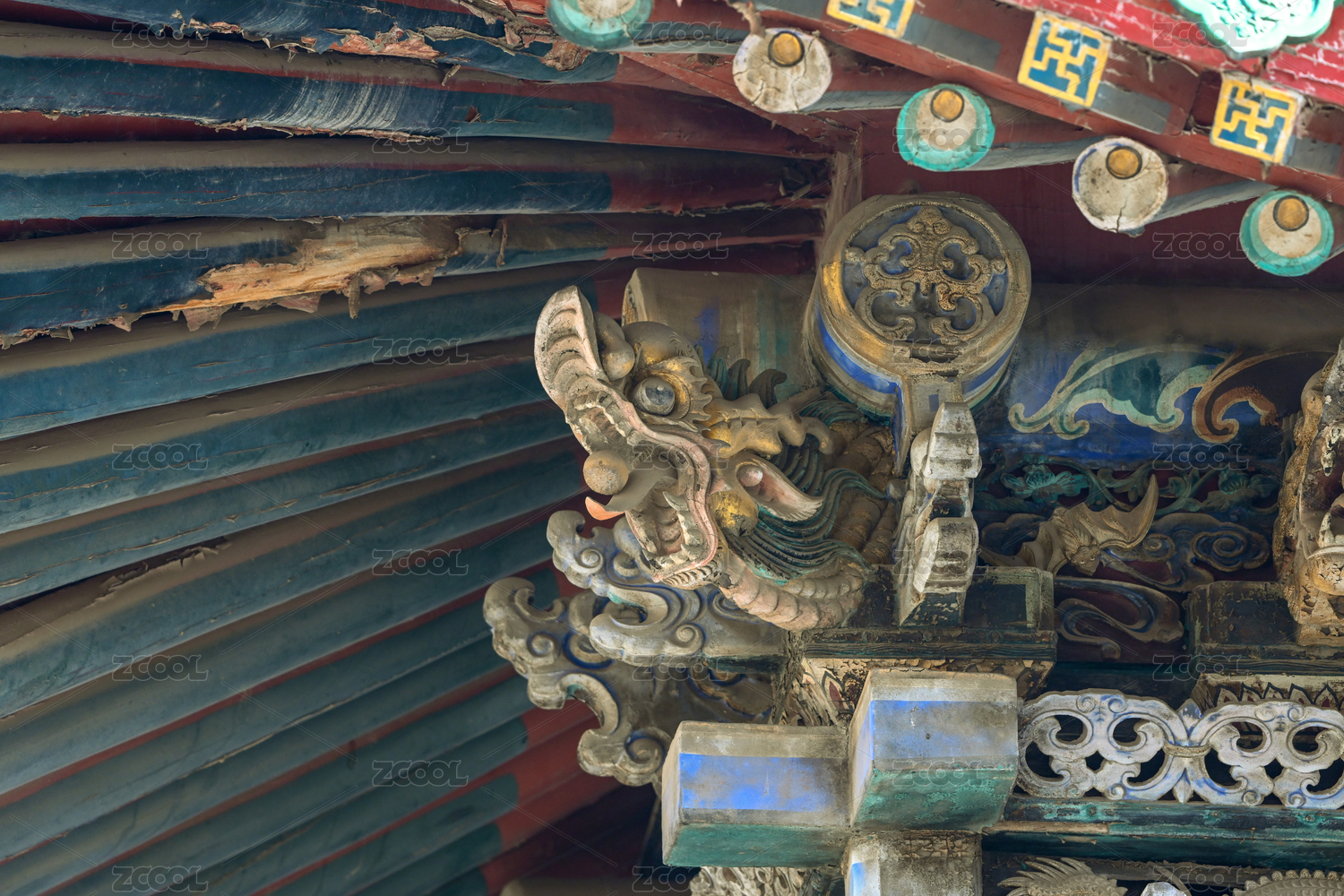 中国山西晋祠古建筑斗拱彩绘雕塑