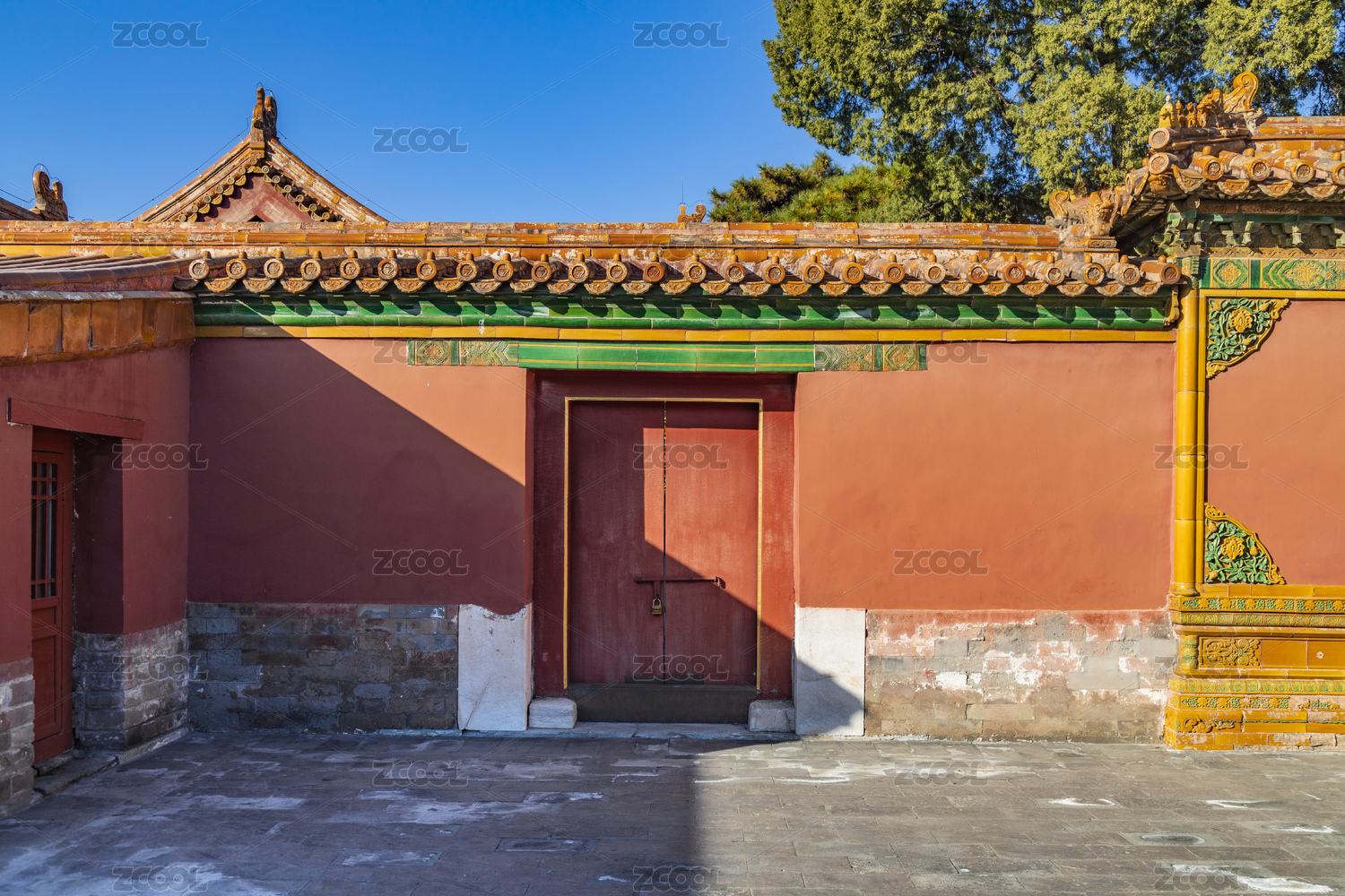 北京故宫博物馆的红墙绿瓦、门头和红门。