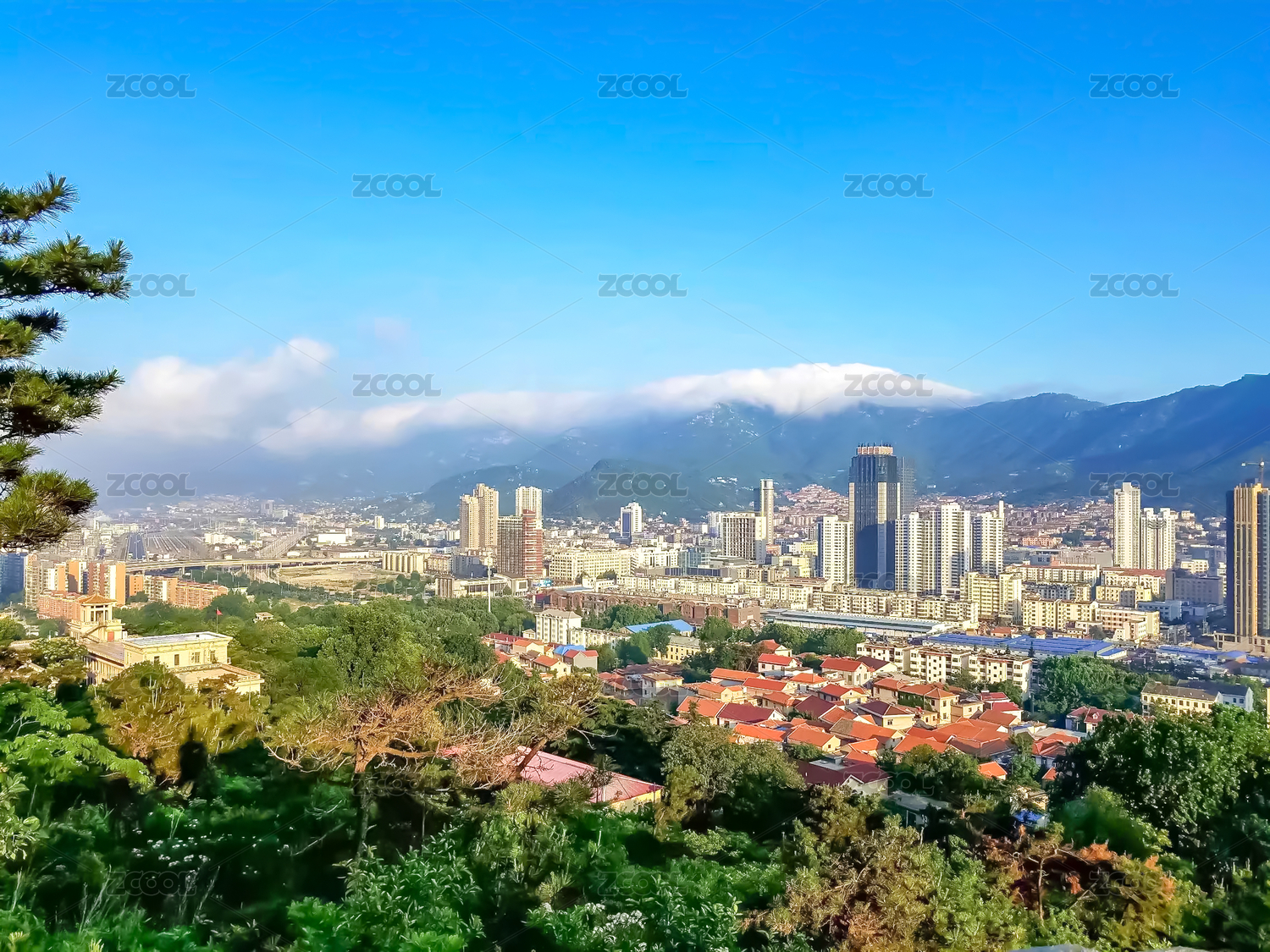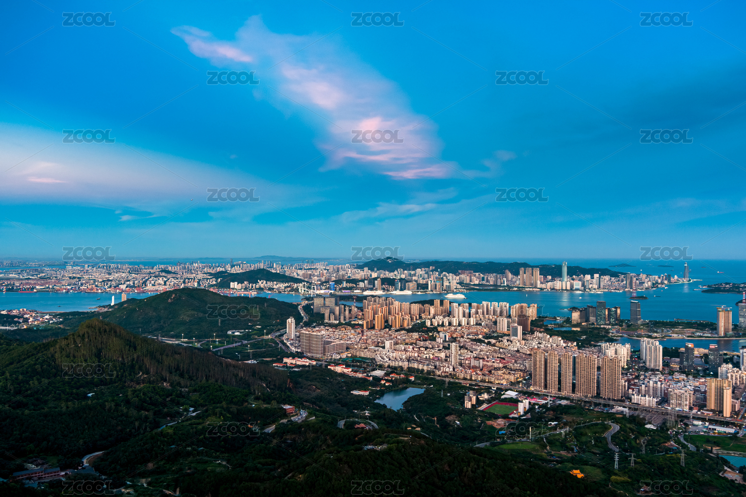 大连莲花山观景台俯瞰城市建筑黄昏夜景