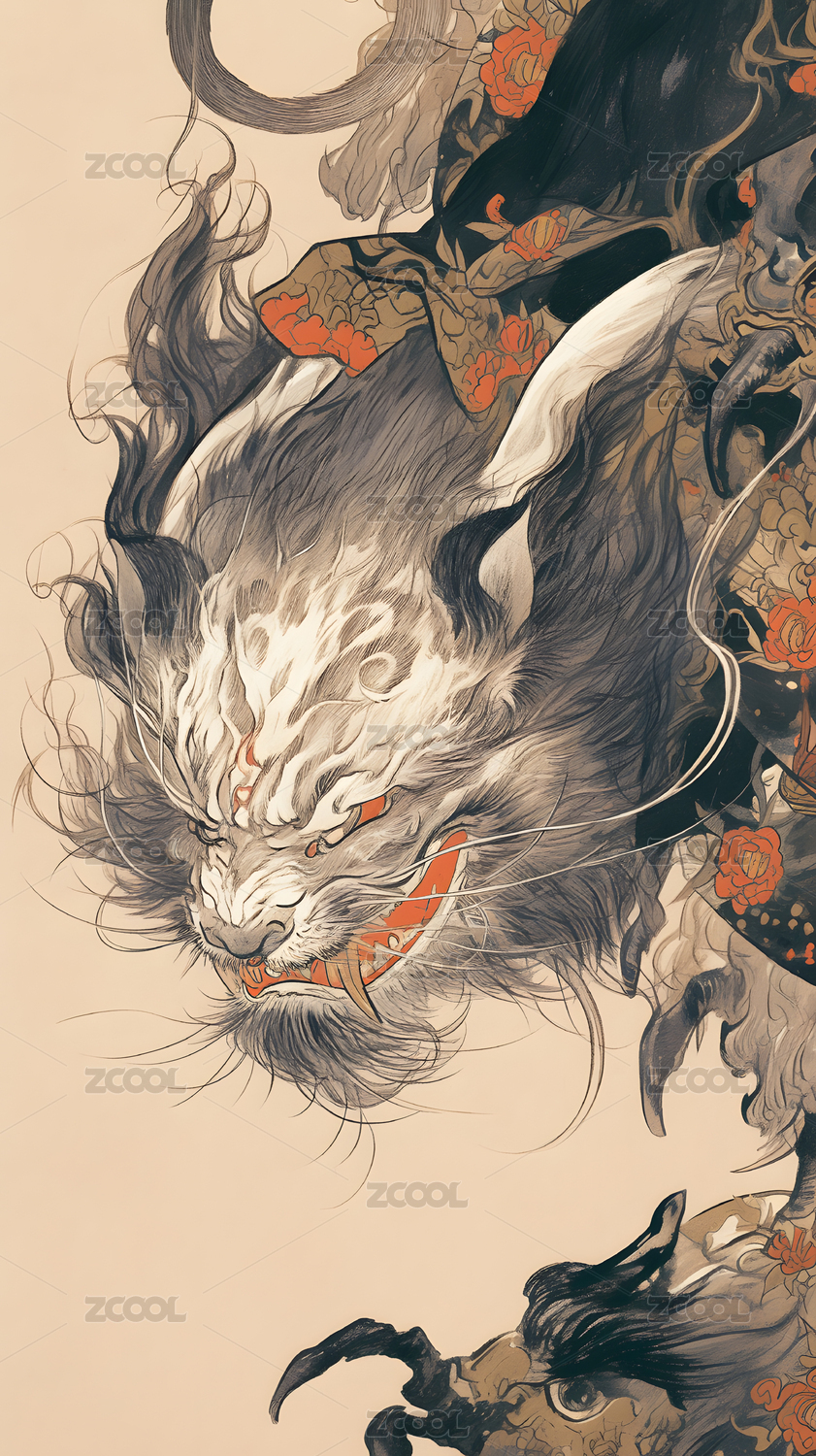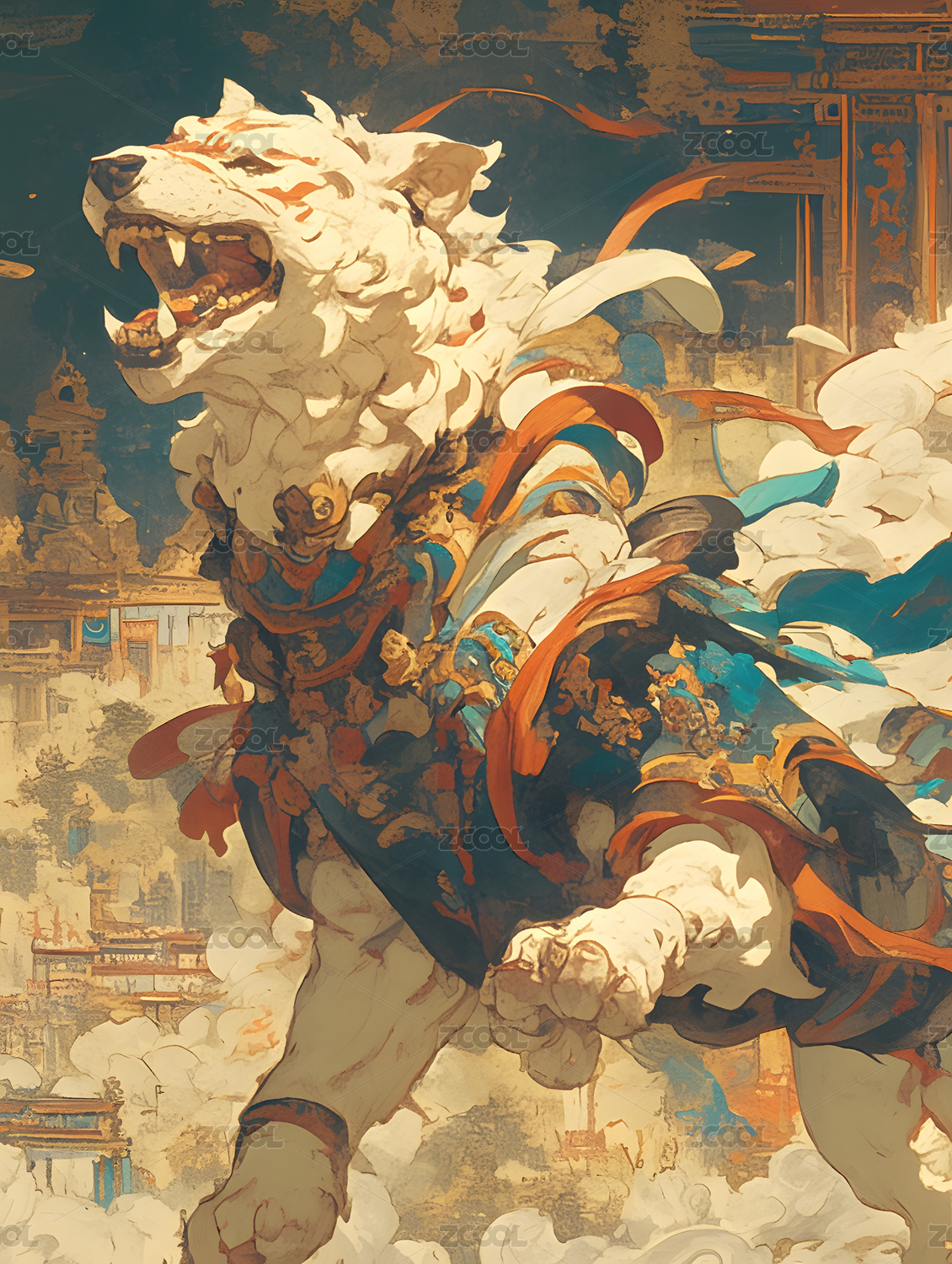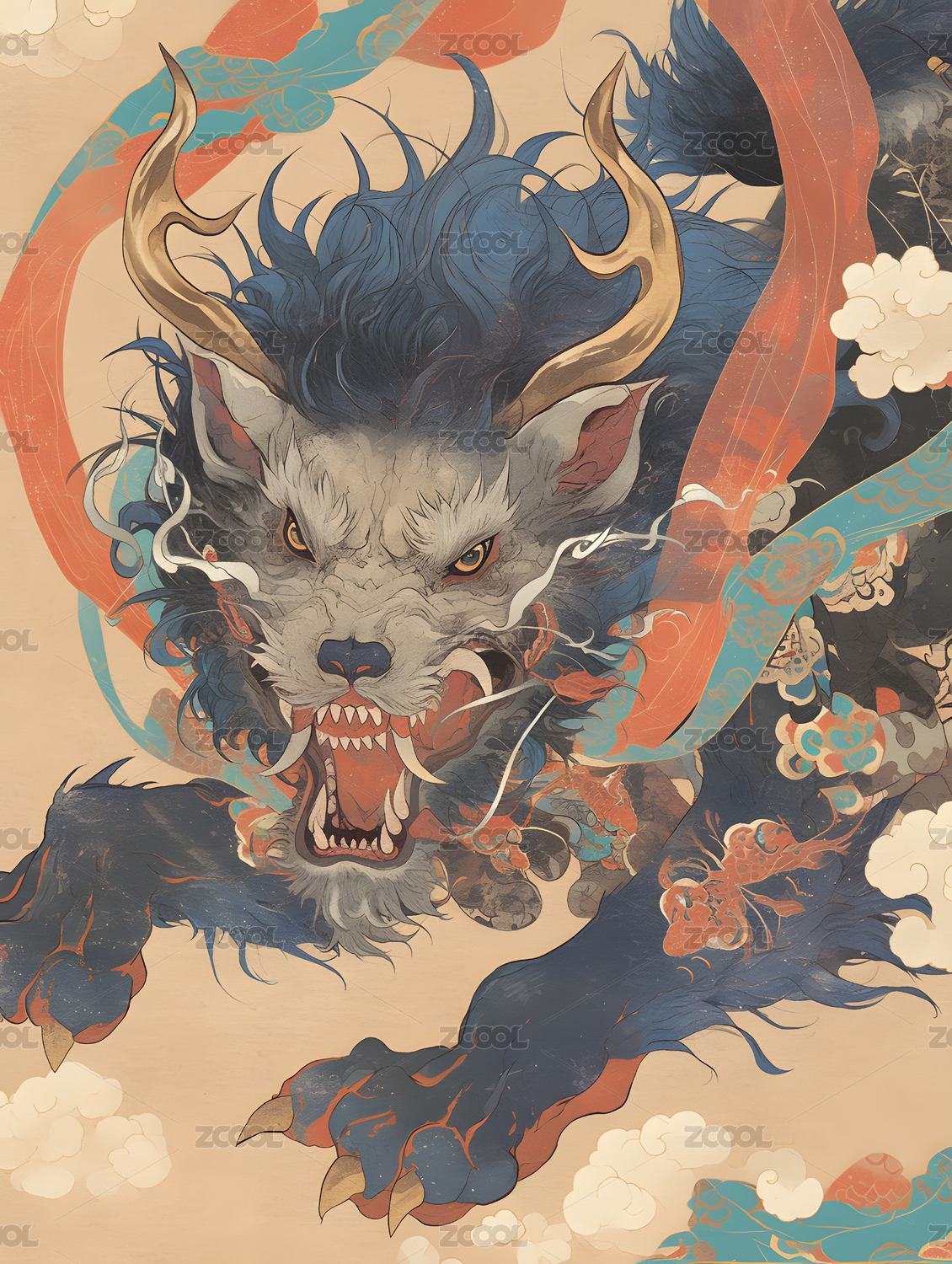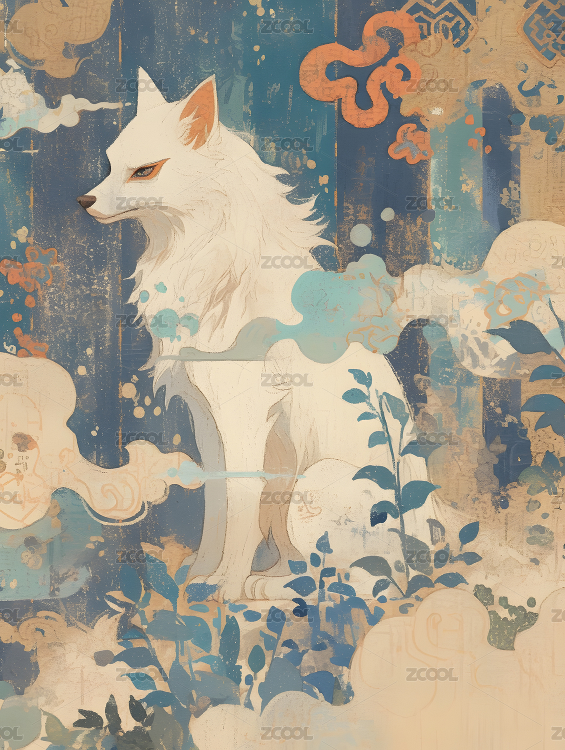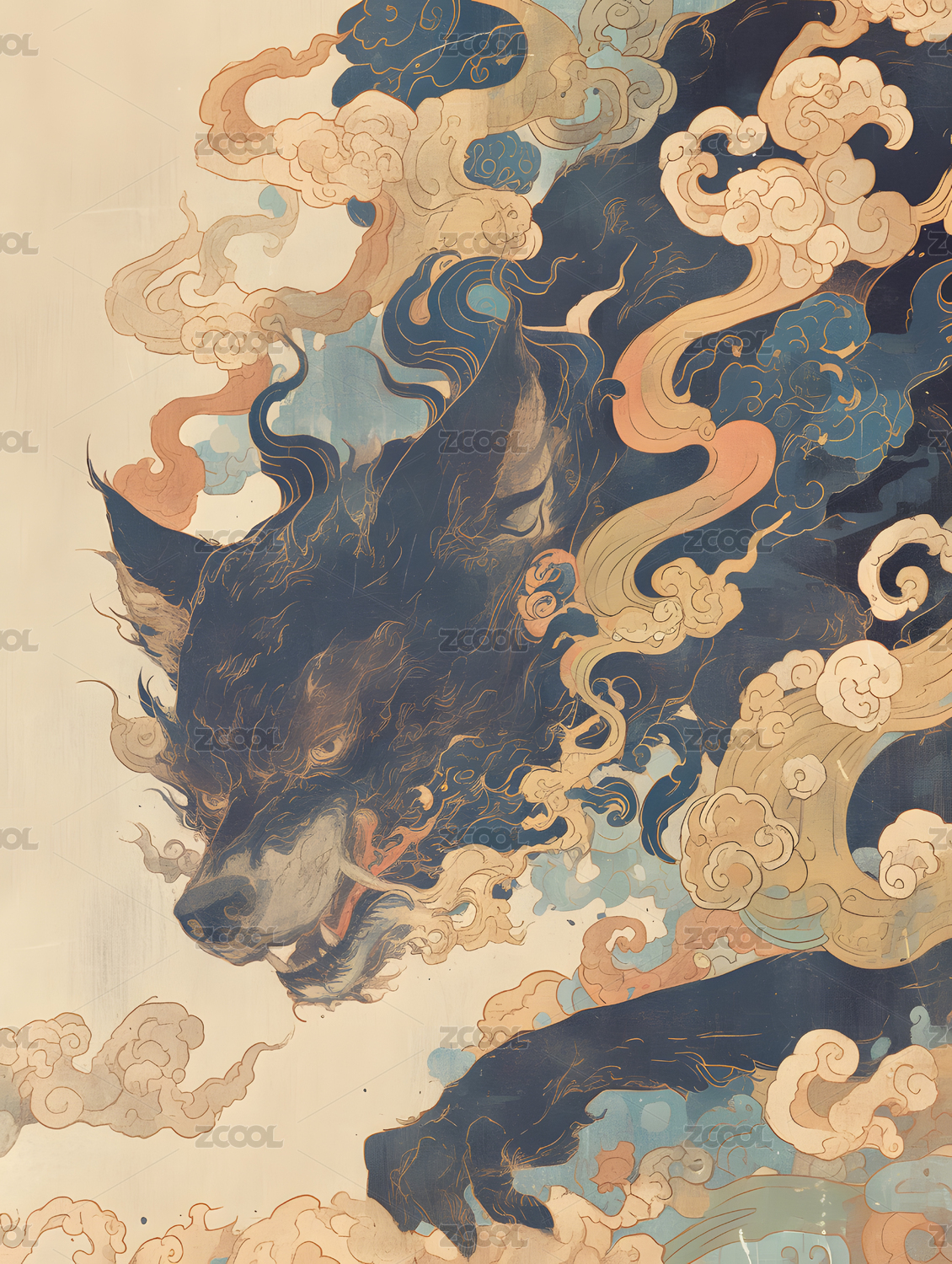 AIGCFG,中国风,插画,中式风格,国潮风,国风,狗,狗年,生肖狗