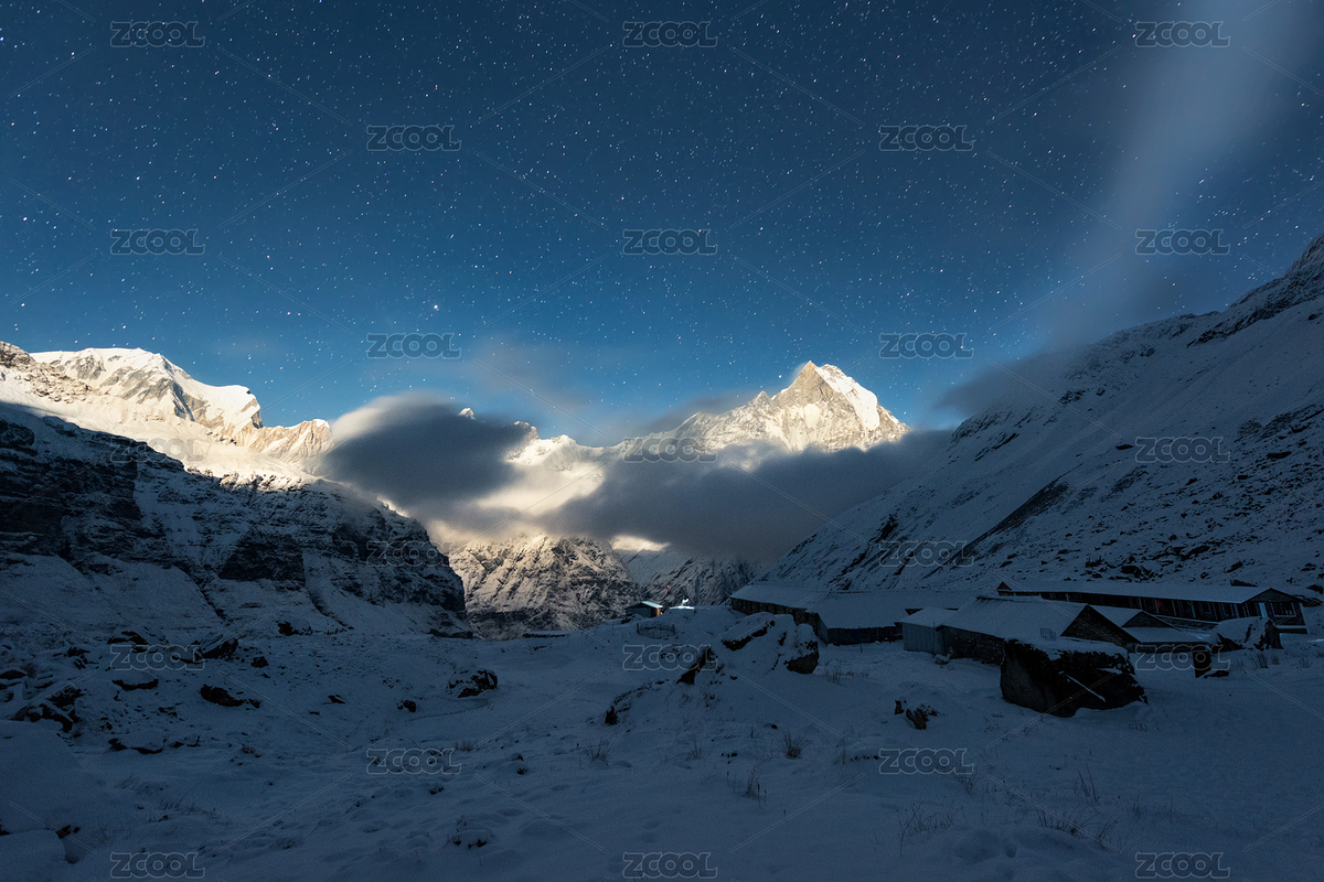 夜晚,冬季,风光,旅行,旅游,渺小,自然,幽静,尼泊尔,ABC