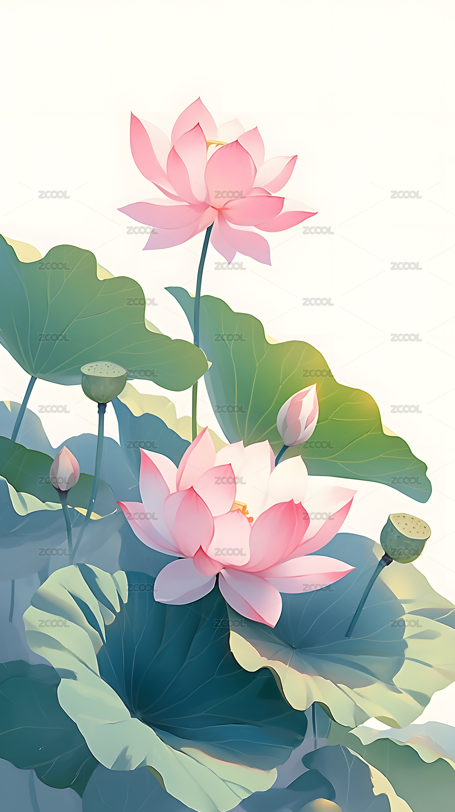 唯美荷花插画