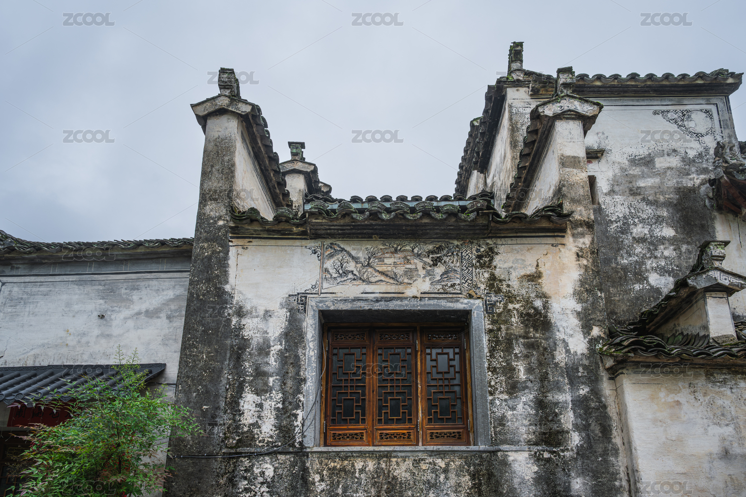 安徽省黄山市黟县西递古村风光徽派建筑结构
