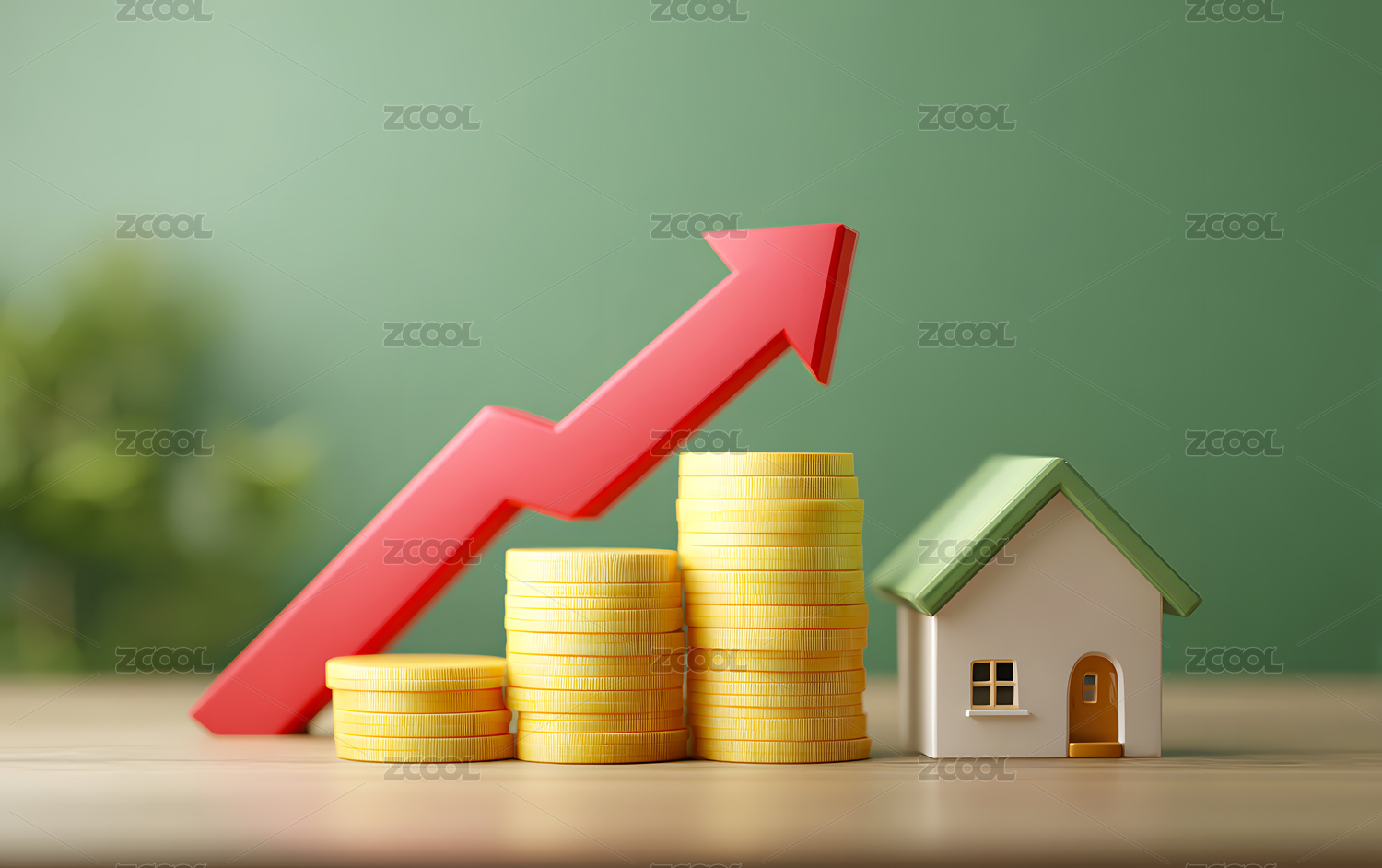 房屋与金币堆叠,显示房价上涨趋势
