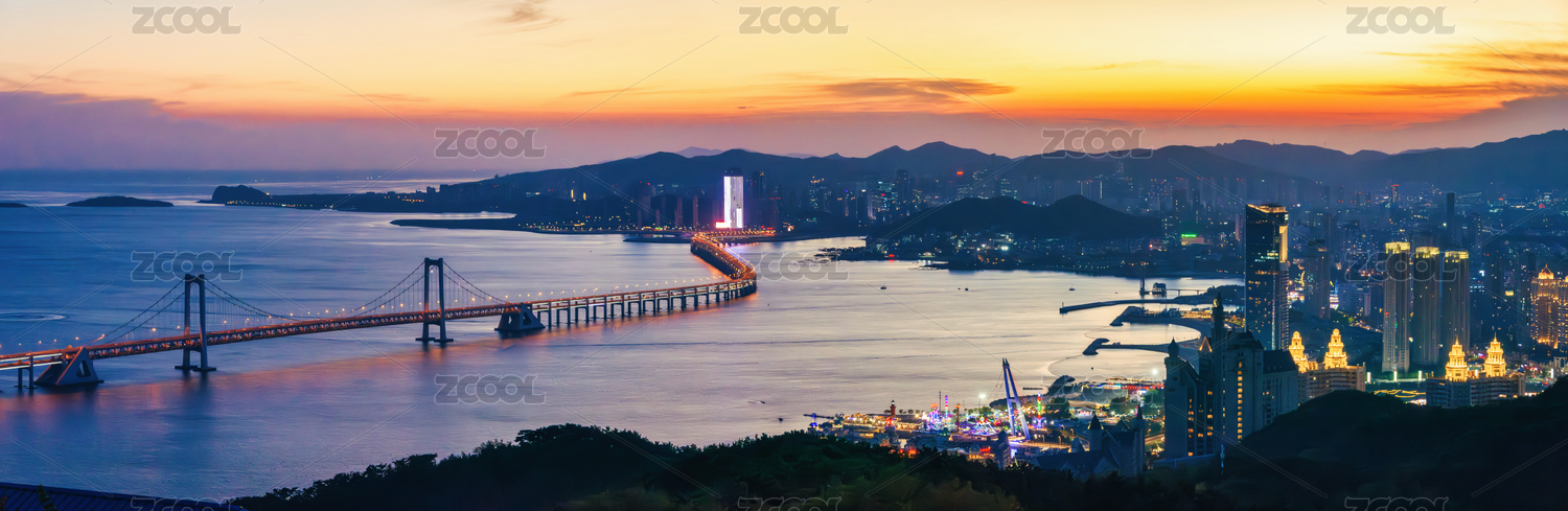 蓝调时刻从莲花山观景台眺望大连市天际线