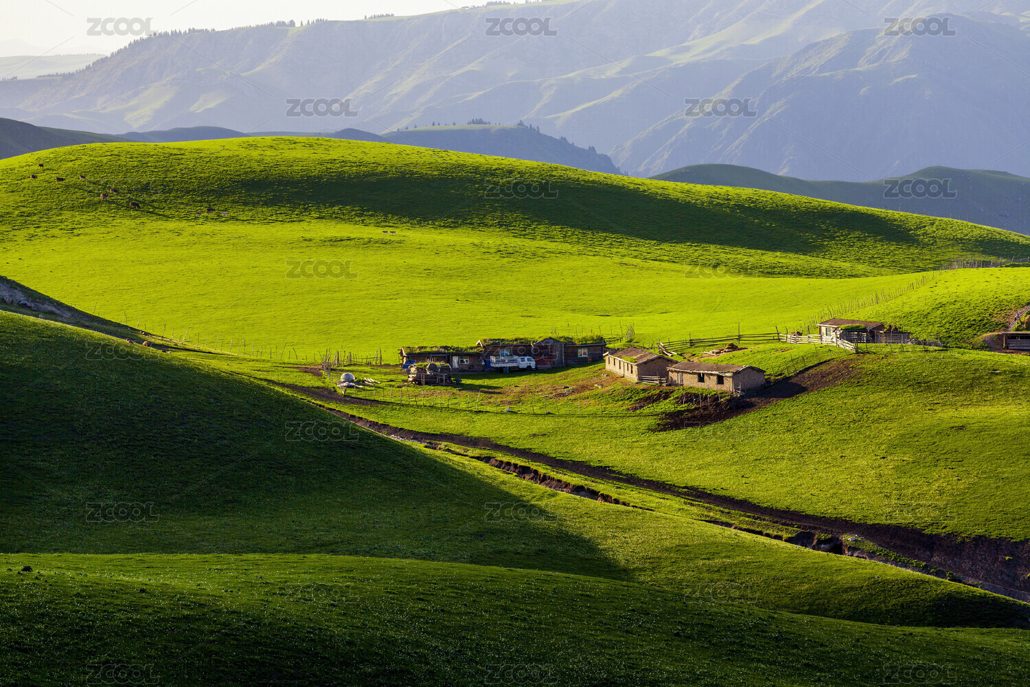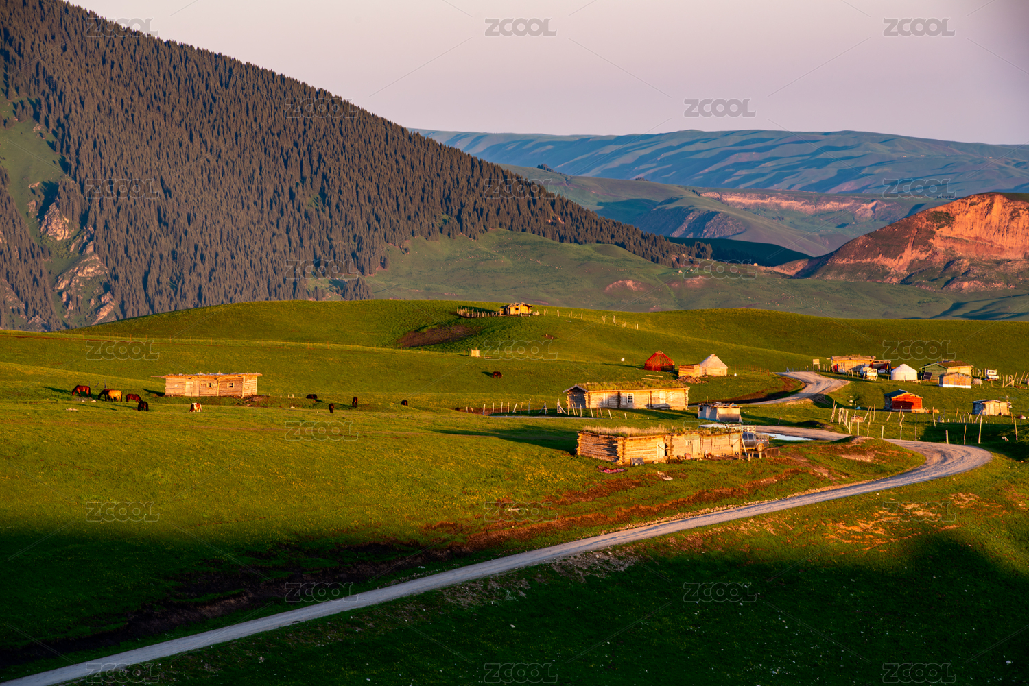 中国新疆伊犁喀拉峻草原琼库什台村的道路