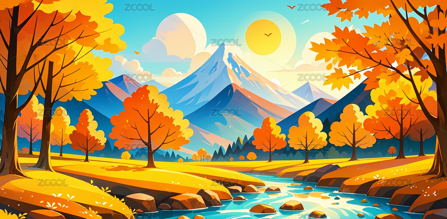 秋天秋季立秋秋分自然户外风景卡通漫画插画