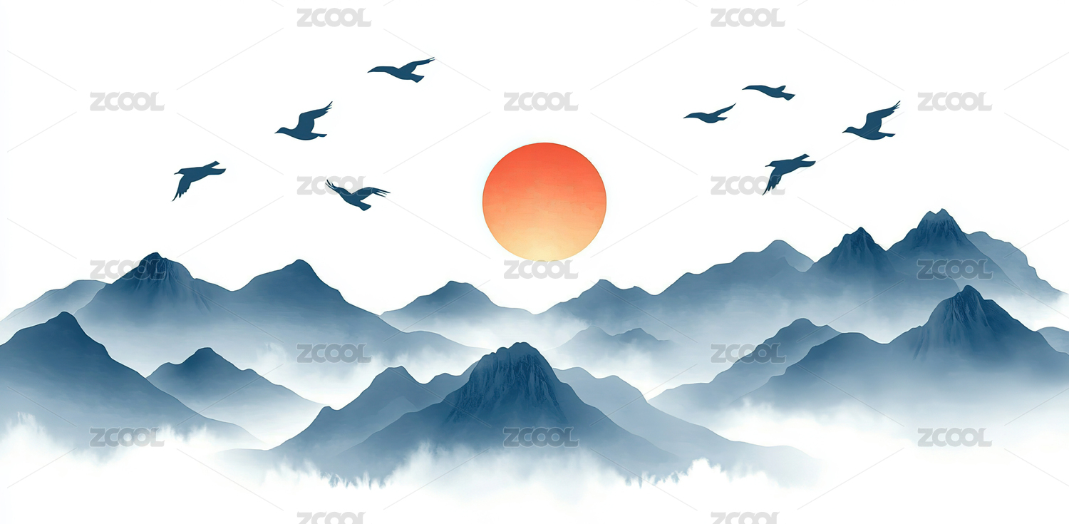 插画,中国文化,地形,中国画,高山,新中式风格,自然,风景,水墨画,背景
