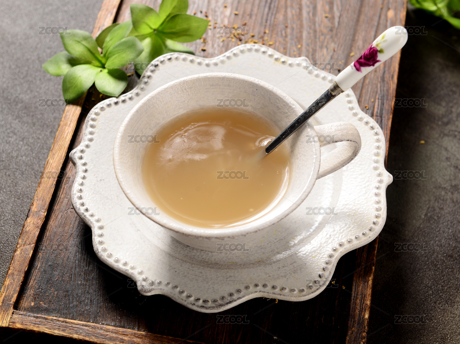 桌面上的杯子里的美味可口的桂花乌龙茶