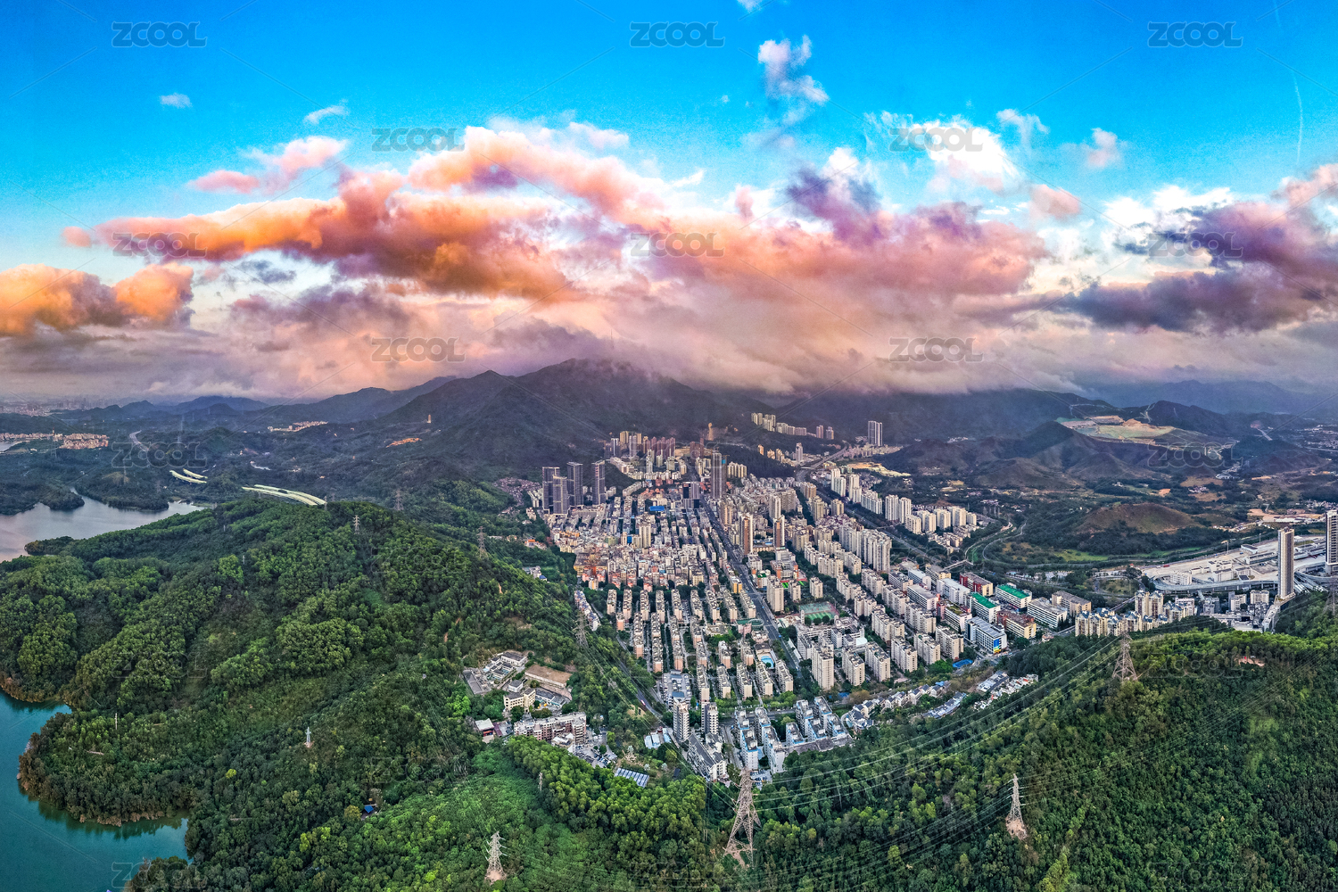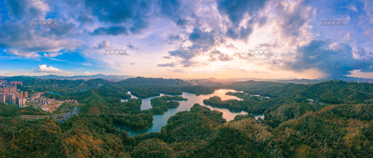 深圳,宝安,尖岗山公园,航拍,全景,铁岗山水库,城市绿化,建筑,曦城别墅,豪宅