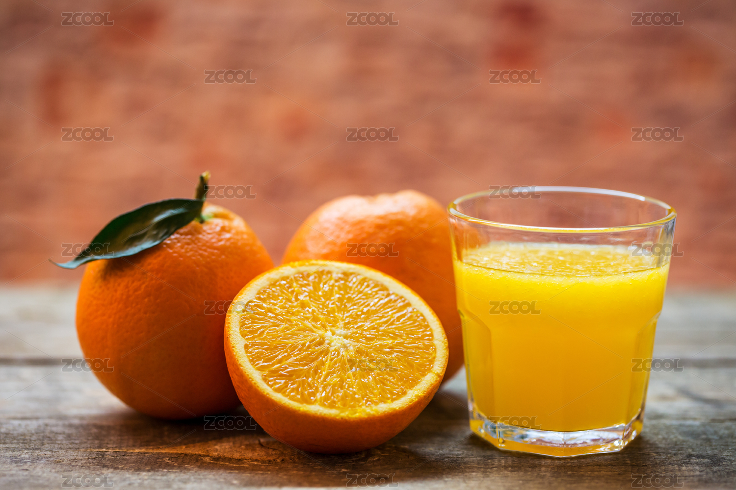 新鲜的橙汁和新鲜的橙子在桌子上,鲜榨果汁,橙汁