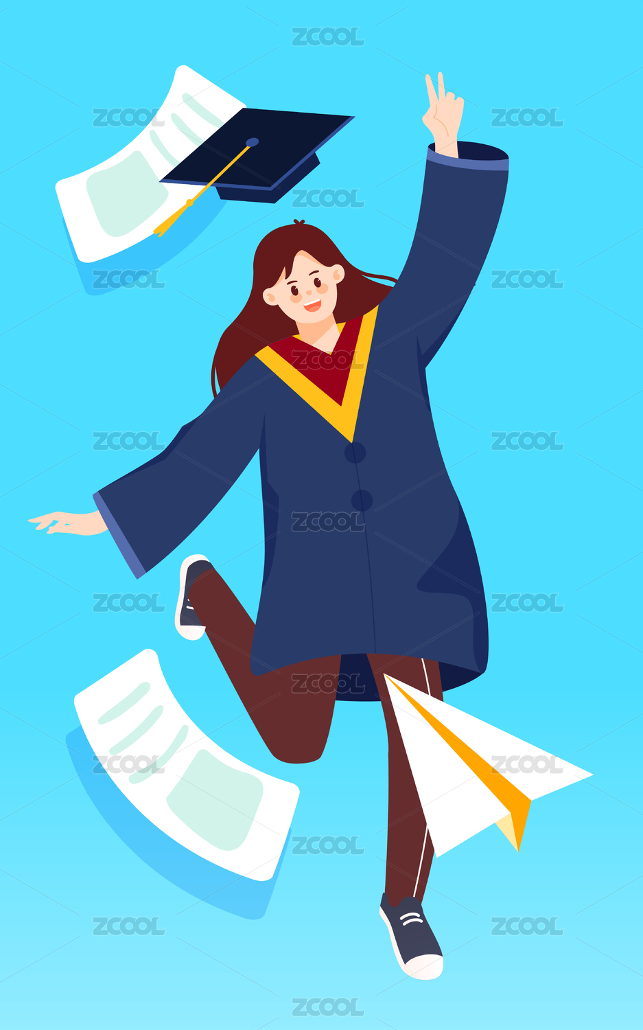学生高考毕业开心跳跃考研冲刺学习教育插画