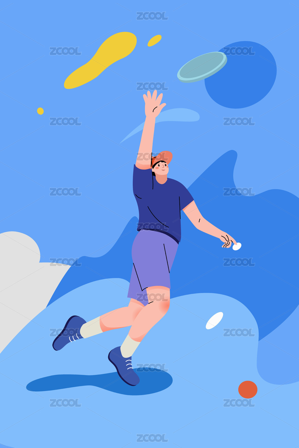 夏天人物锻炼身体运动健身打羽毛球比赛插画