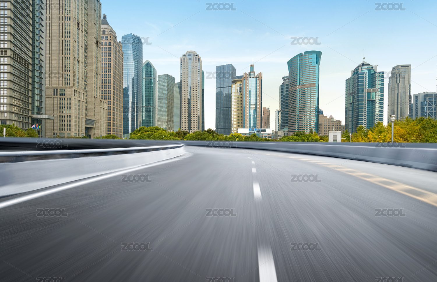 以上海城市建筑为背景的高速路创意图