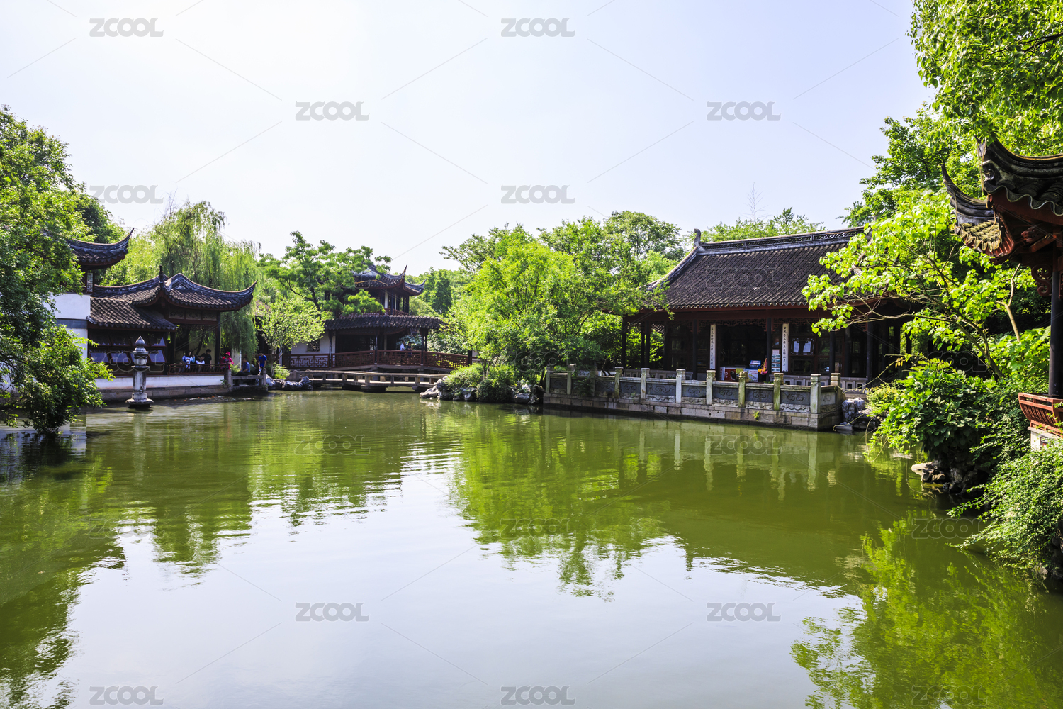 拙政园内的亭子池塘和树
