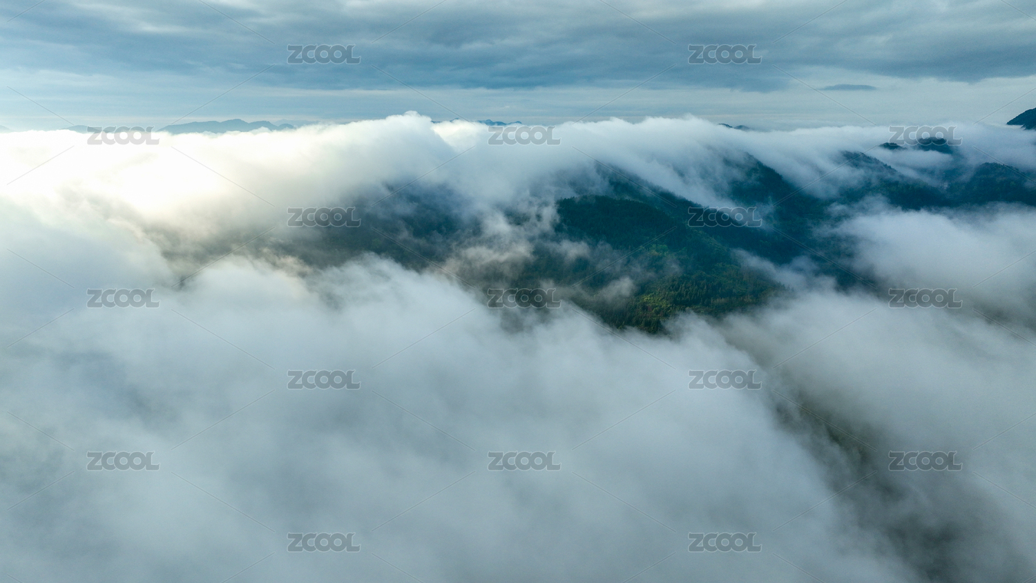 江西庐山西海柘林湖高山上的云雾