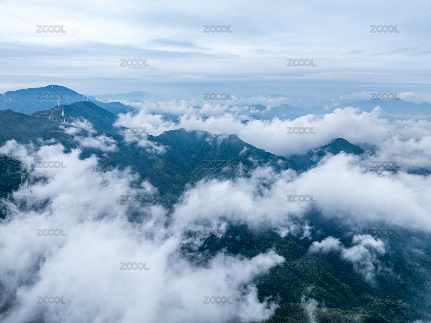 航拍江西玉华山风电场云雾云海