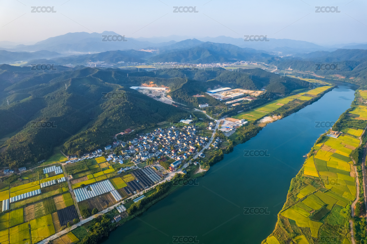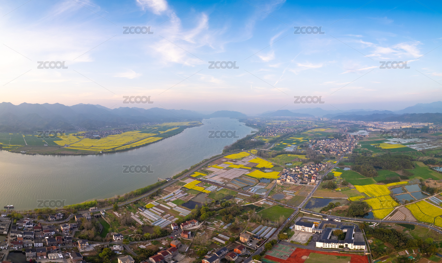浙江省杭州市富阳区富春江两岸风光航拍