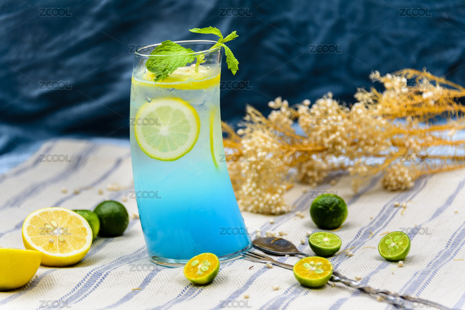蓝色柠檬冰饮