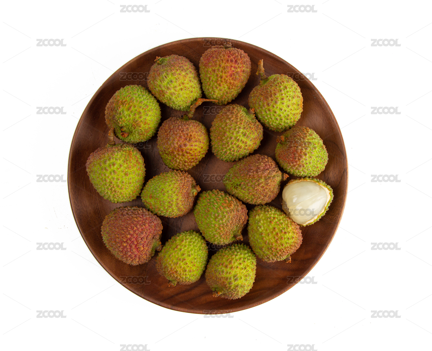 一篮子夏天热带水果荔枝的白底图