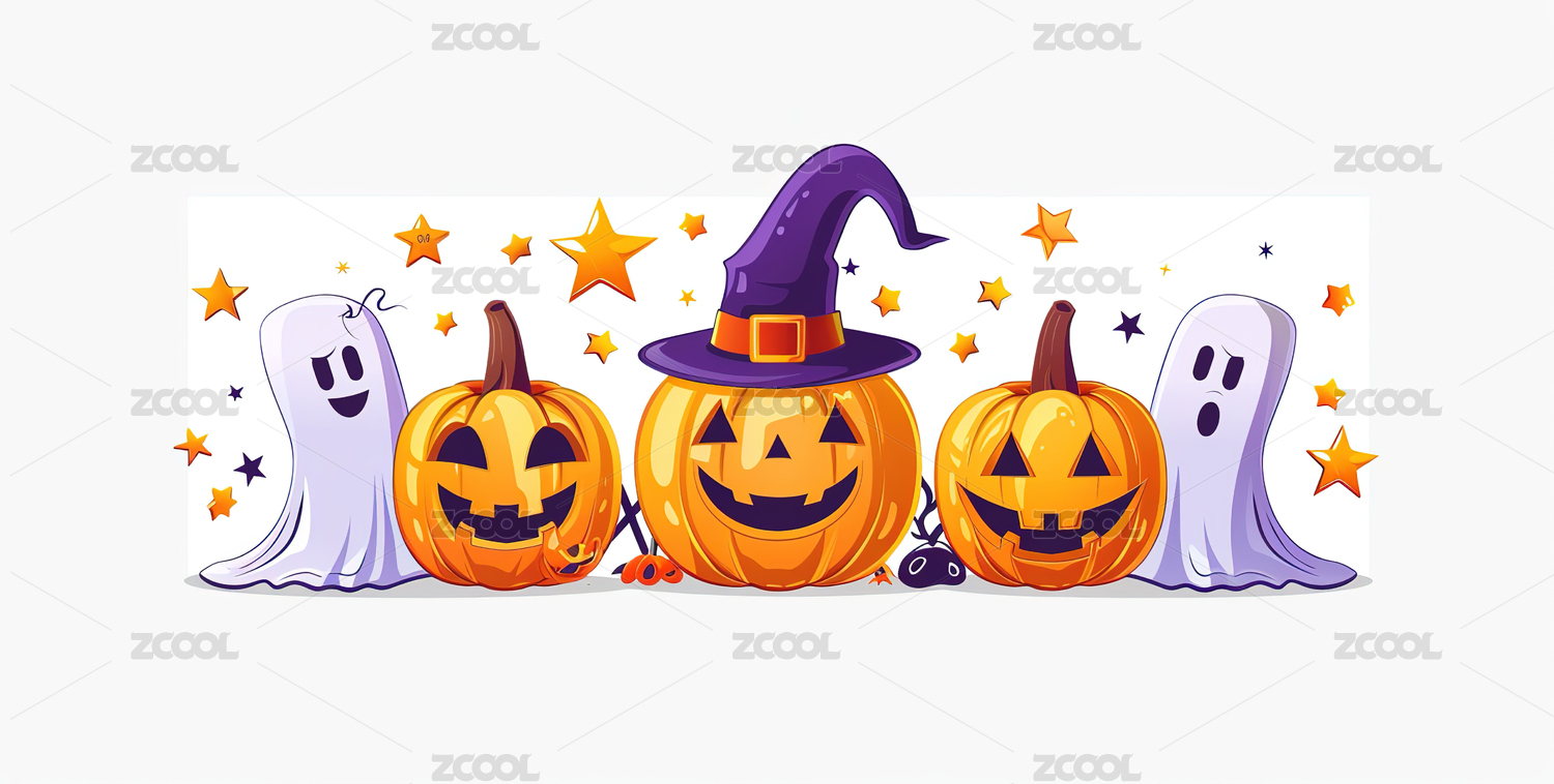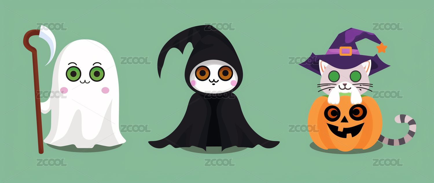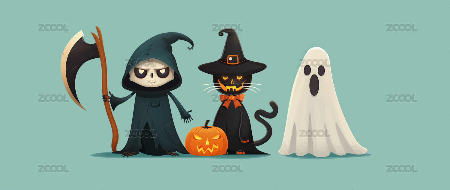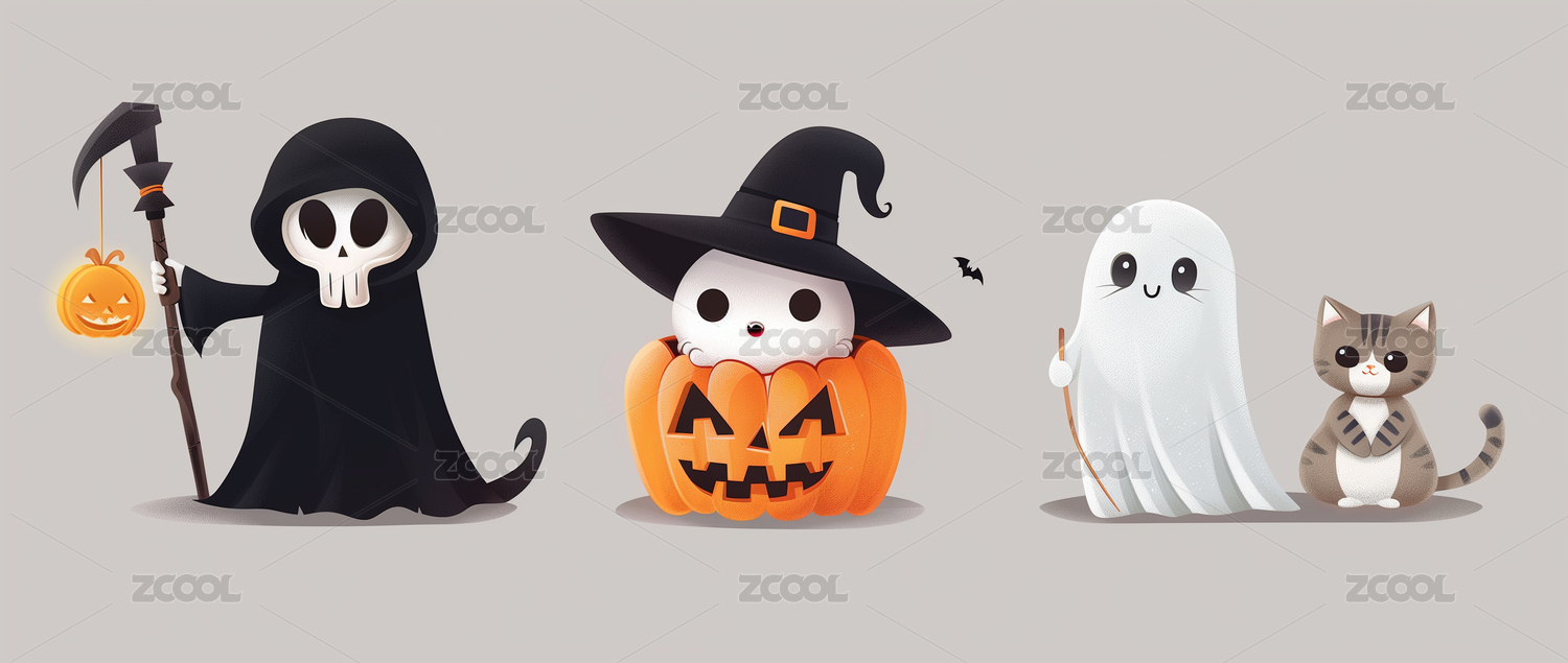 万圣节,卡通,插画,鬼魂,女巫,南瓜,死神