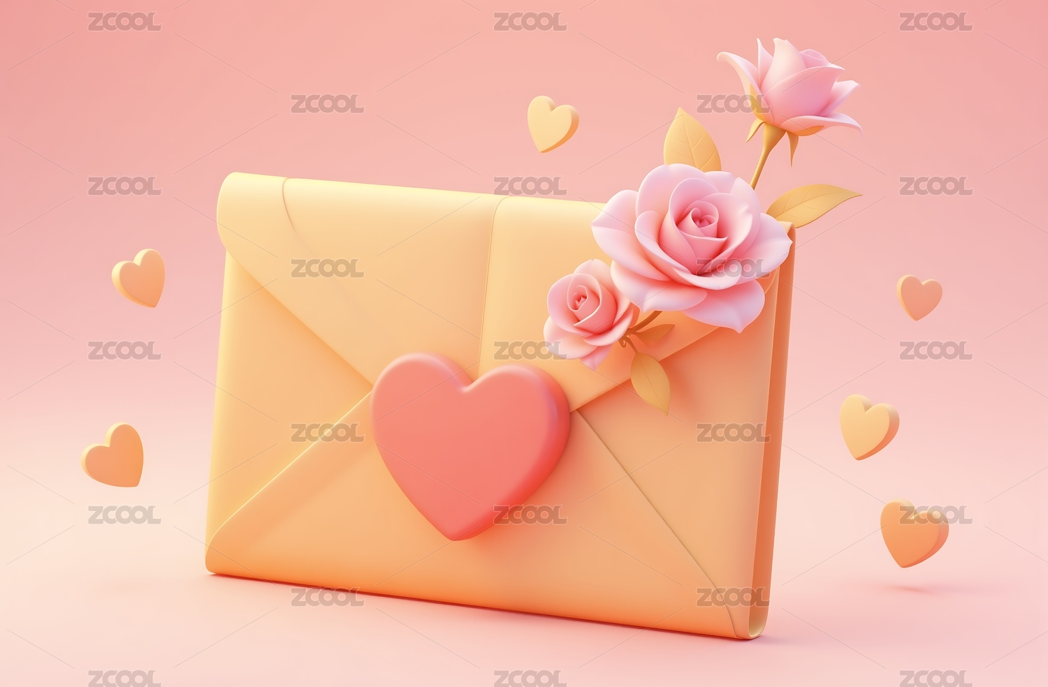 卡通情人节情书请柬婚礼文案模板3D渲染