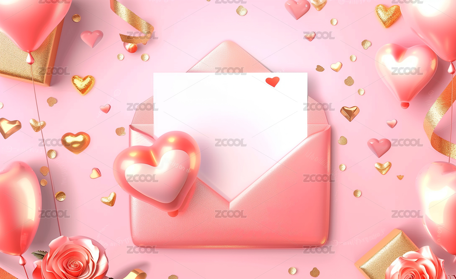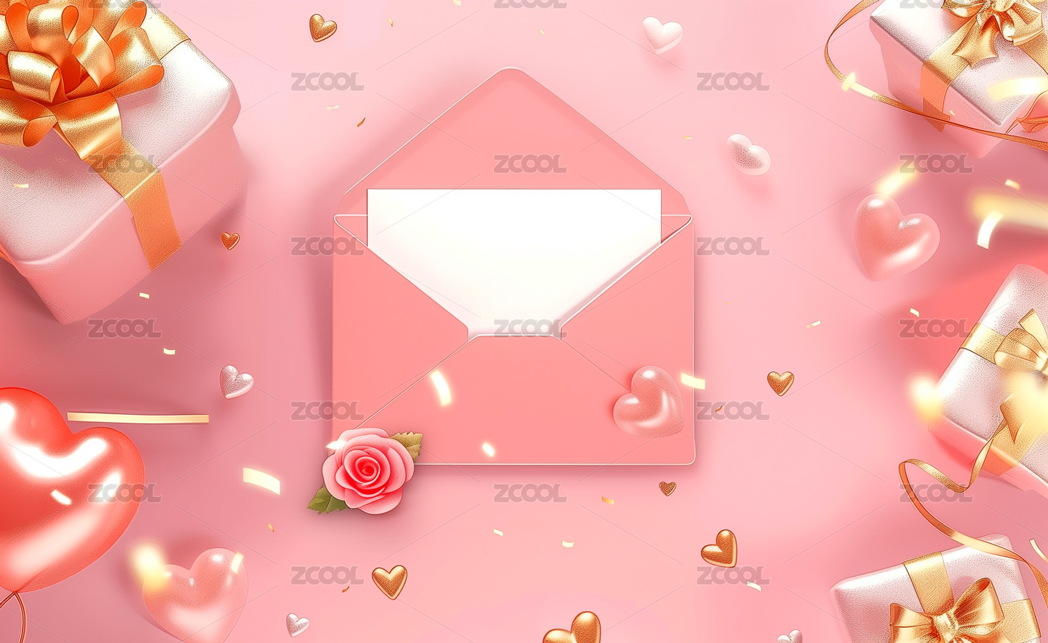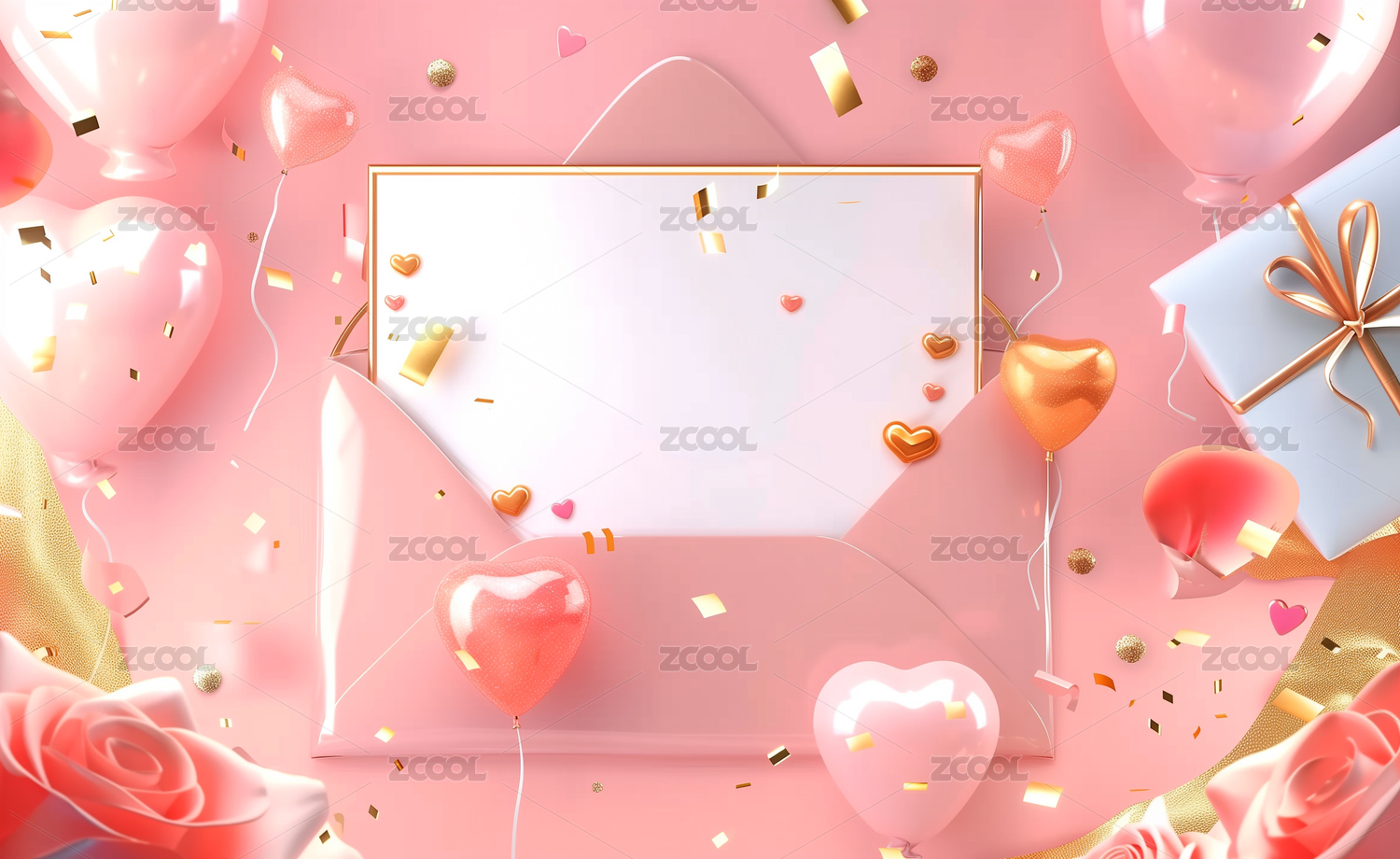 爱心,彩带,粉色,礼盒,玫瑰,气球,情人节,丝带,信封,信纸