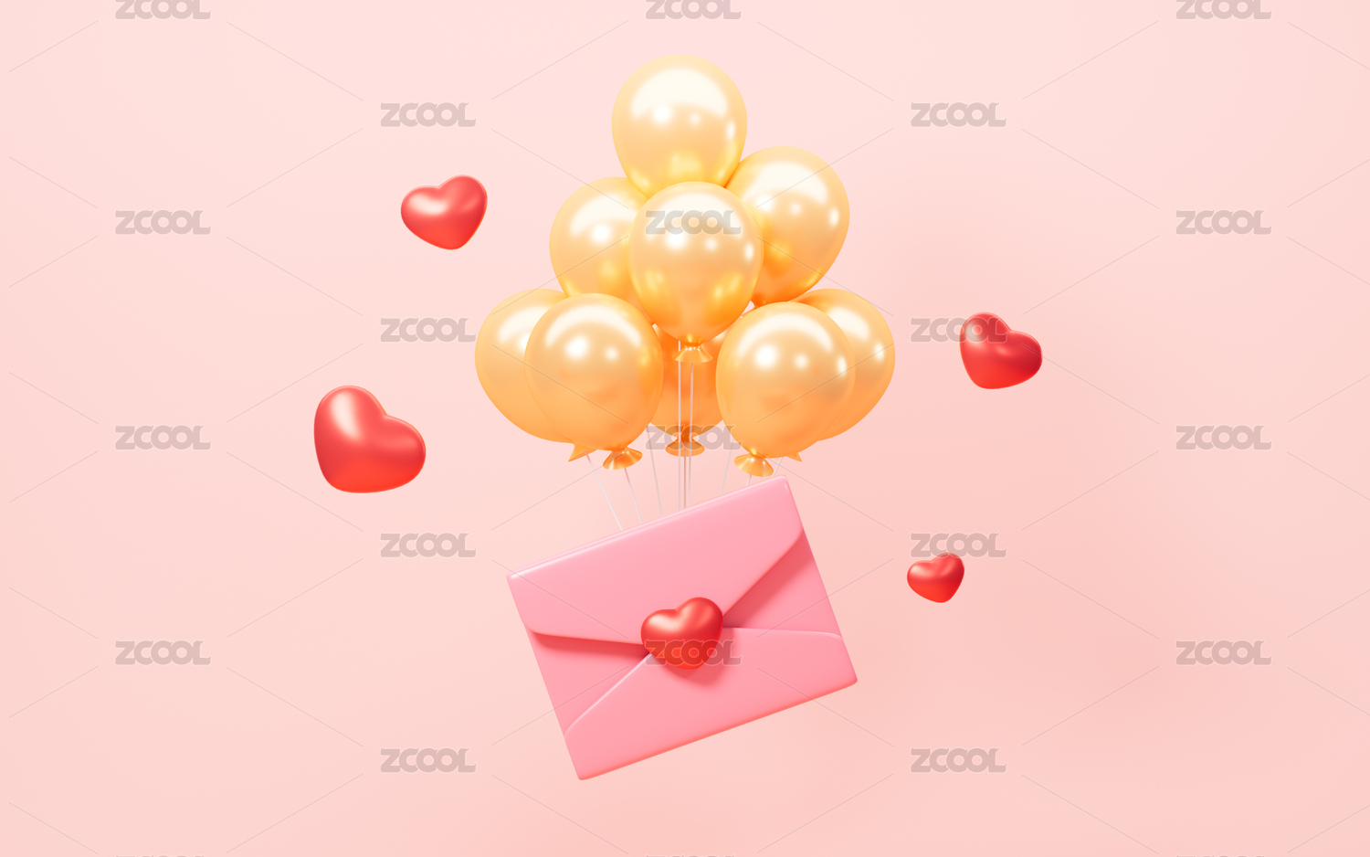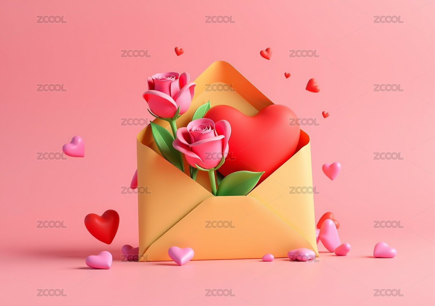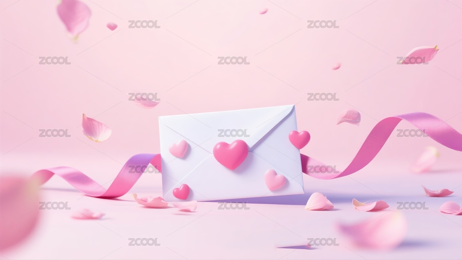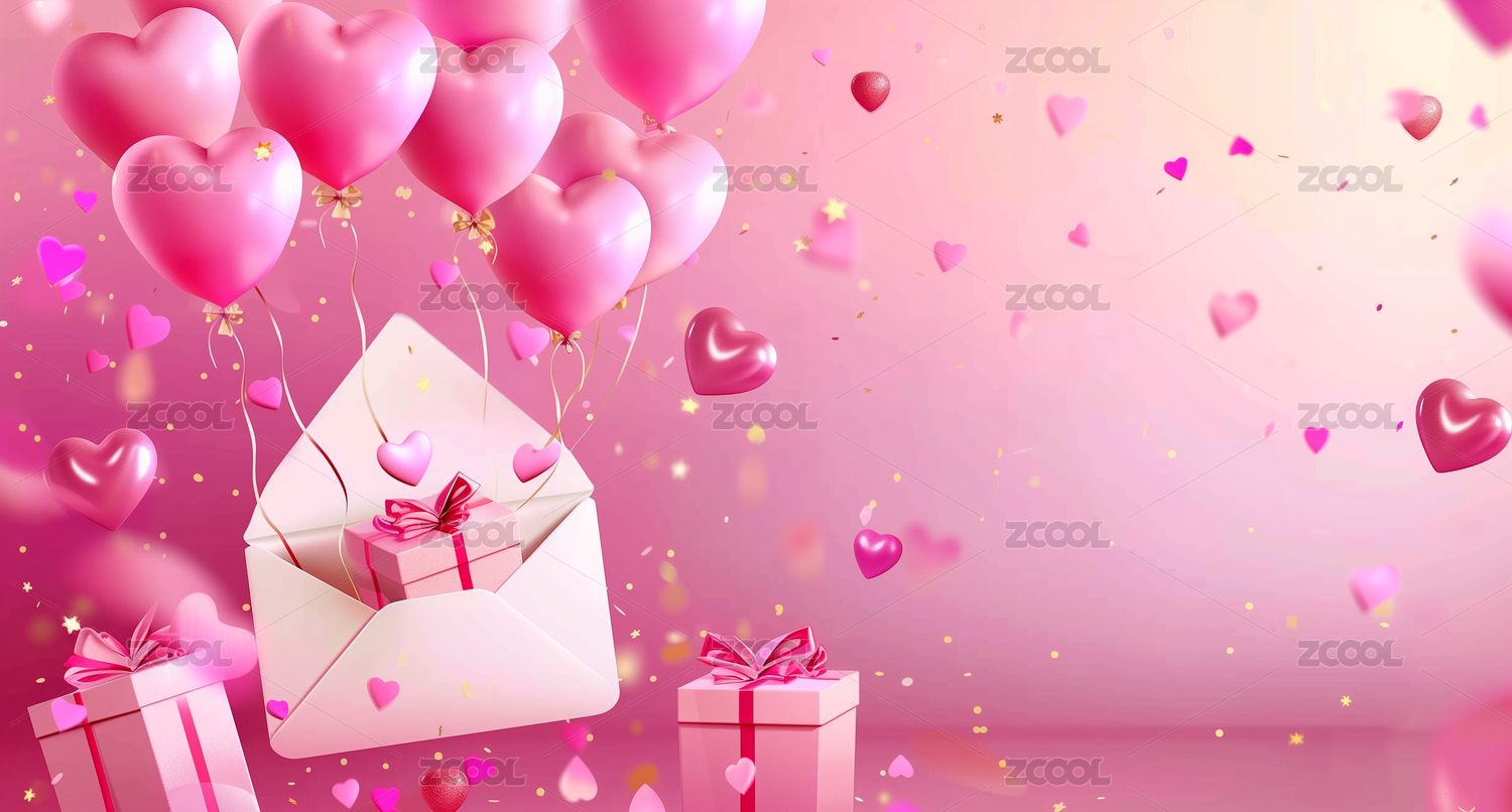 爱心,彩带,粉色,礼盒,玫瑰,气球,情人节,丝带,信封,信纸