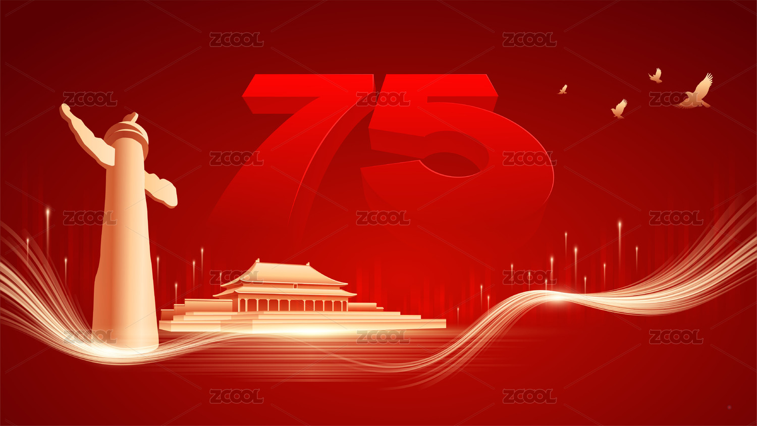 国庆周年庆插画