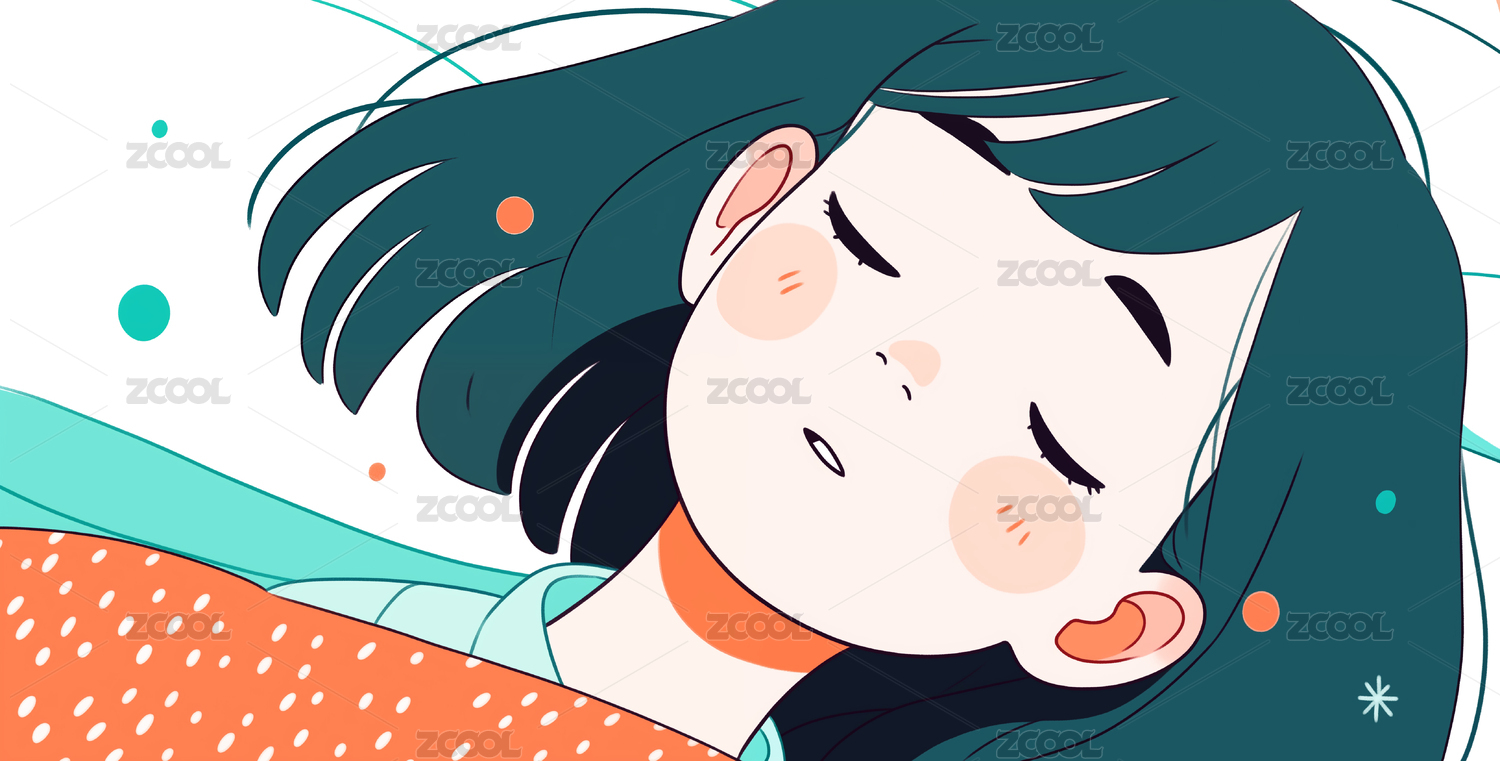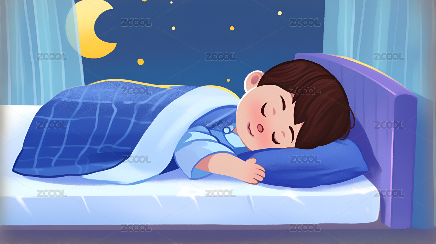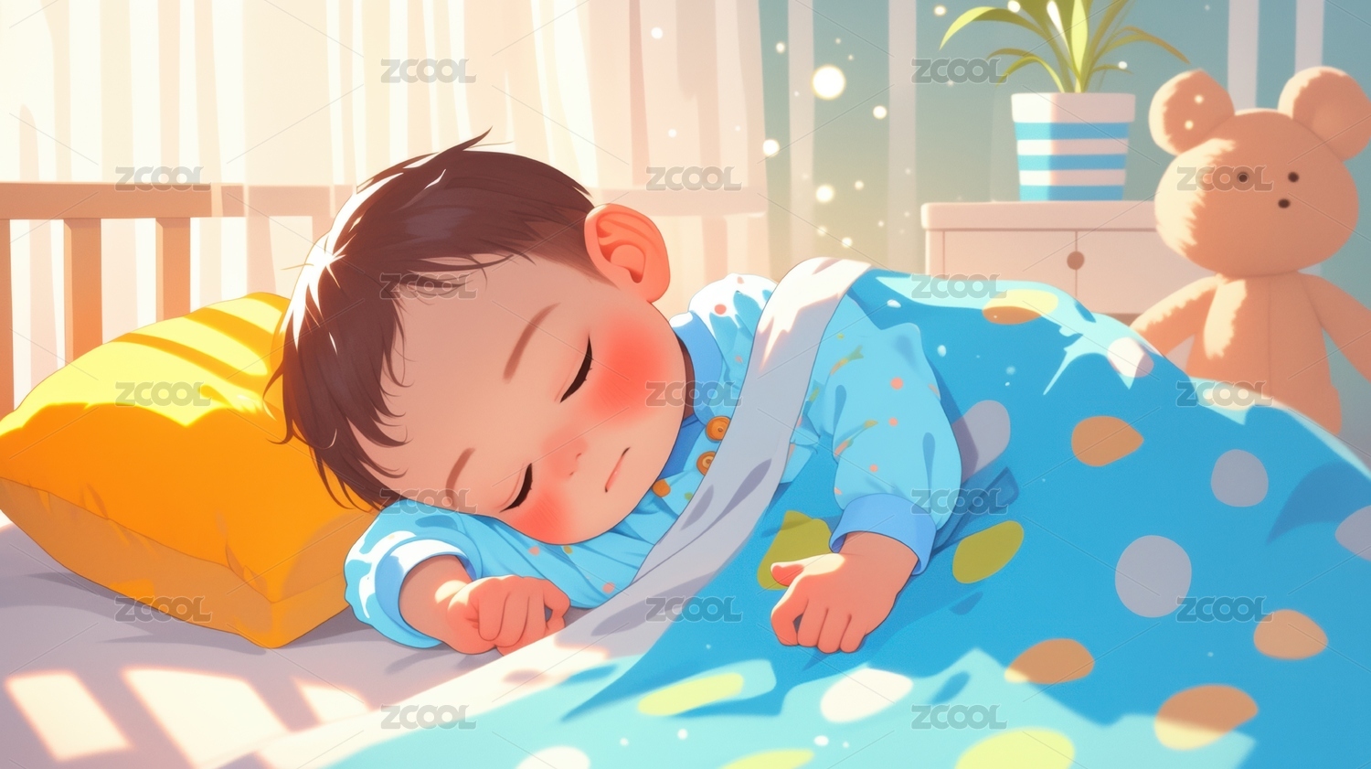 卡通,可爱,插画,阳光,温馨,早晨,舒适,女孩,睡觉,床