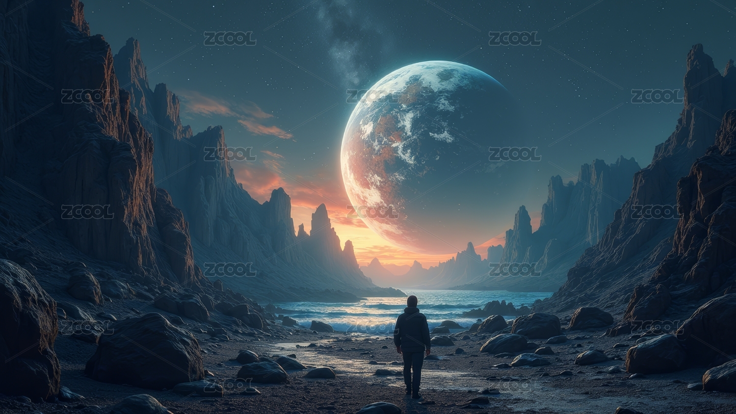 一个人眺望宇宙星球