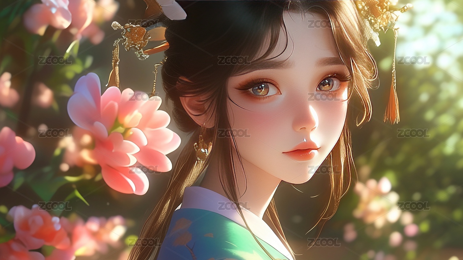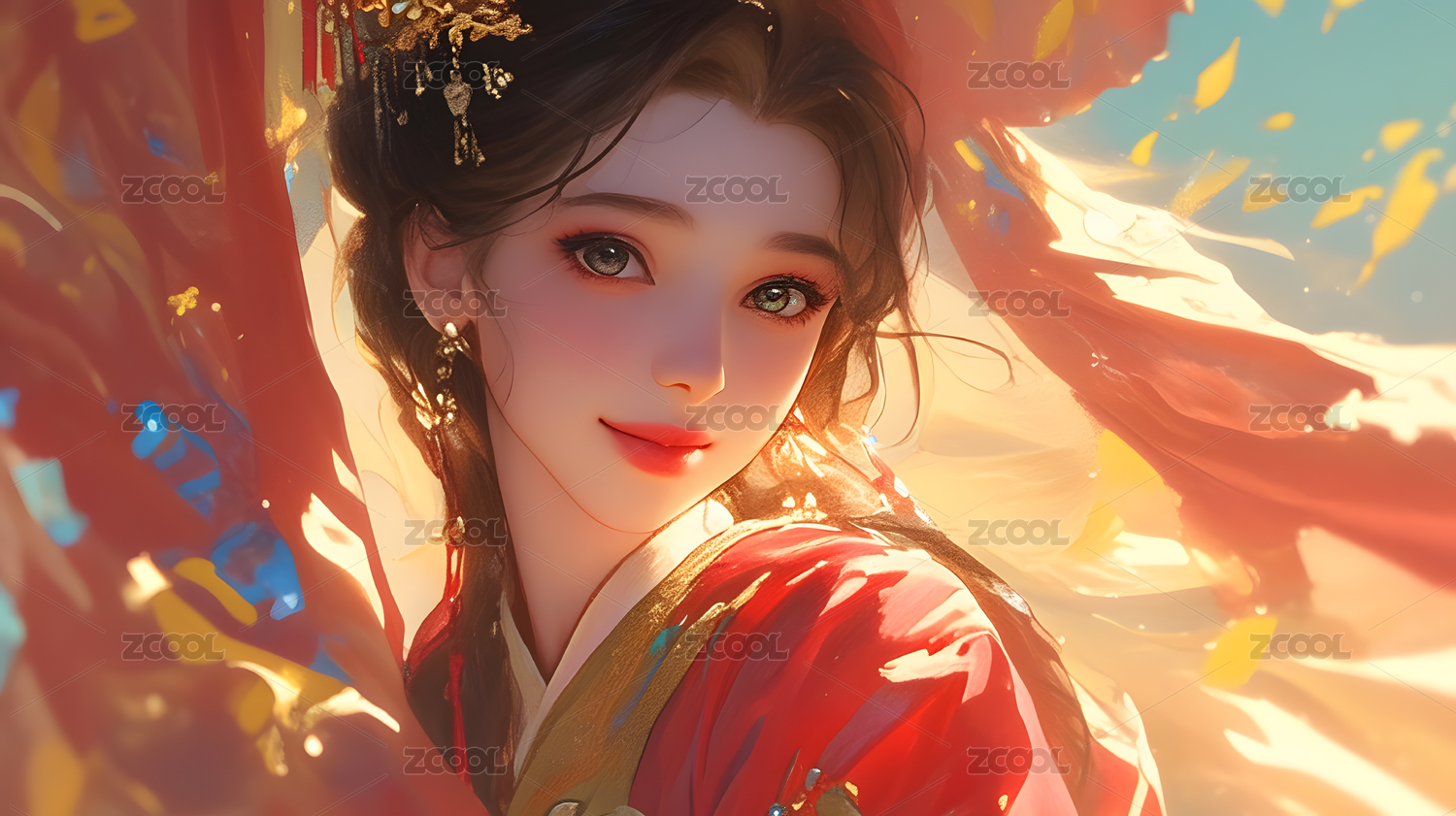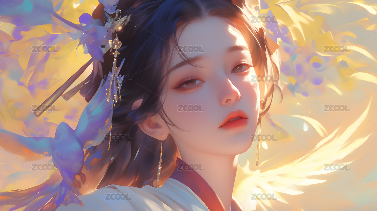 艺术,彩色,梦幻,唯美,少女,蝴蝶,仙子,插画风,飘逸,亮丽