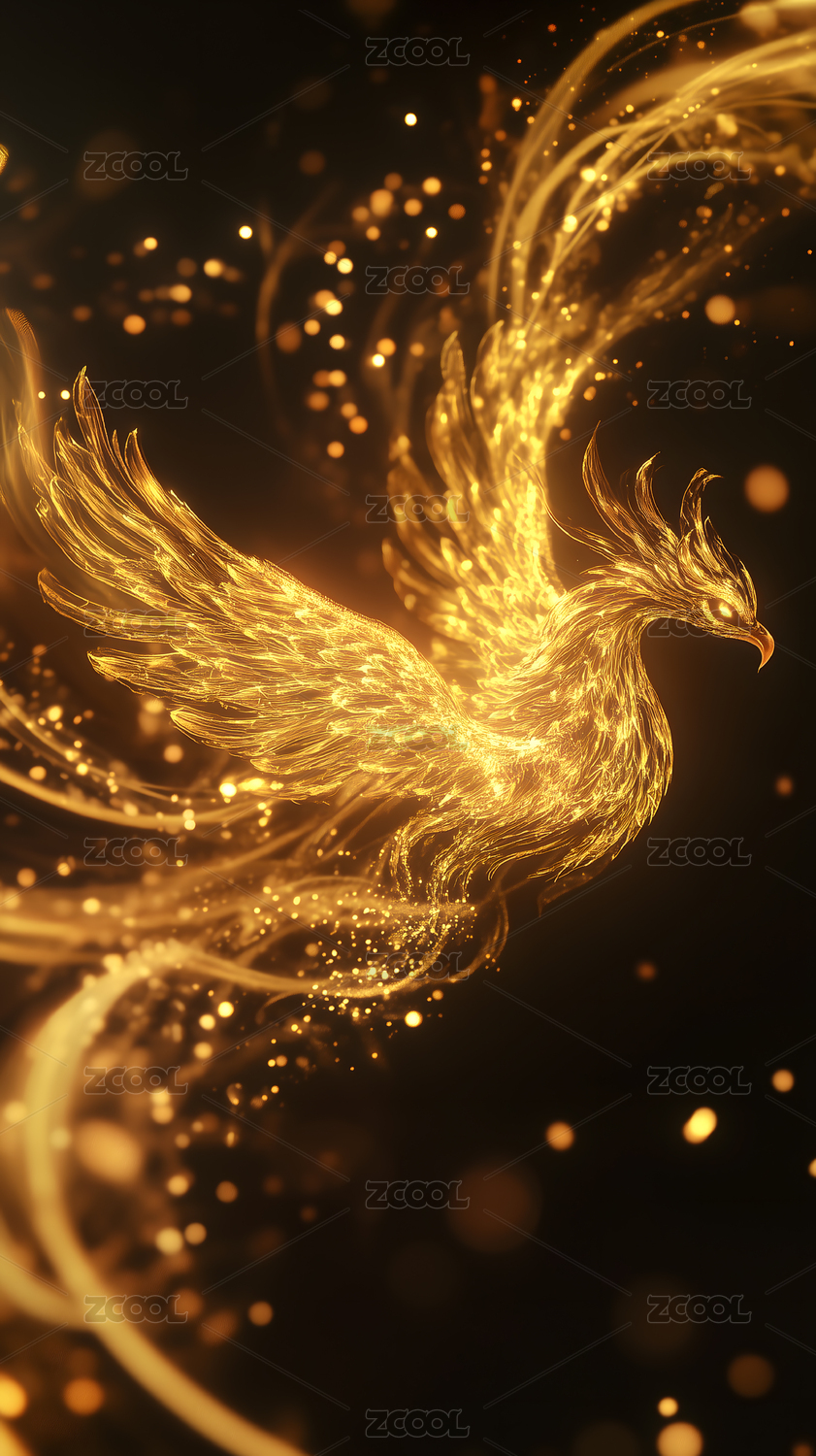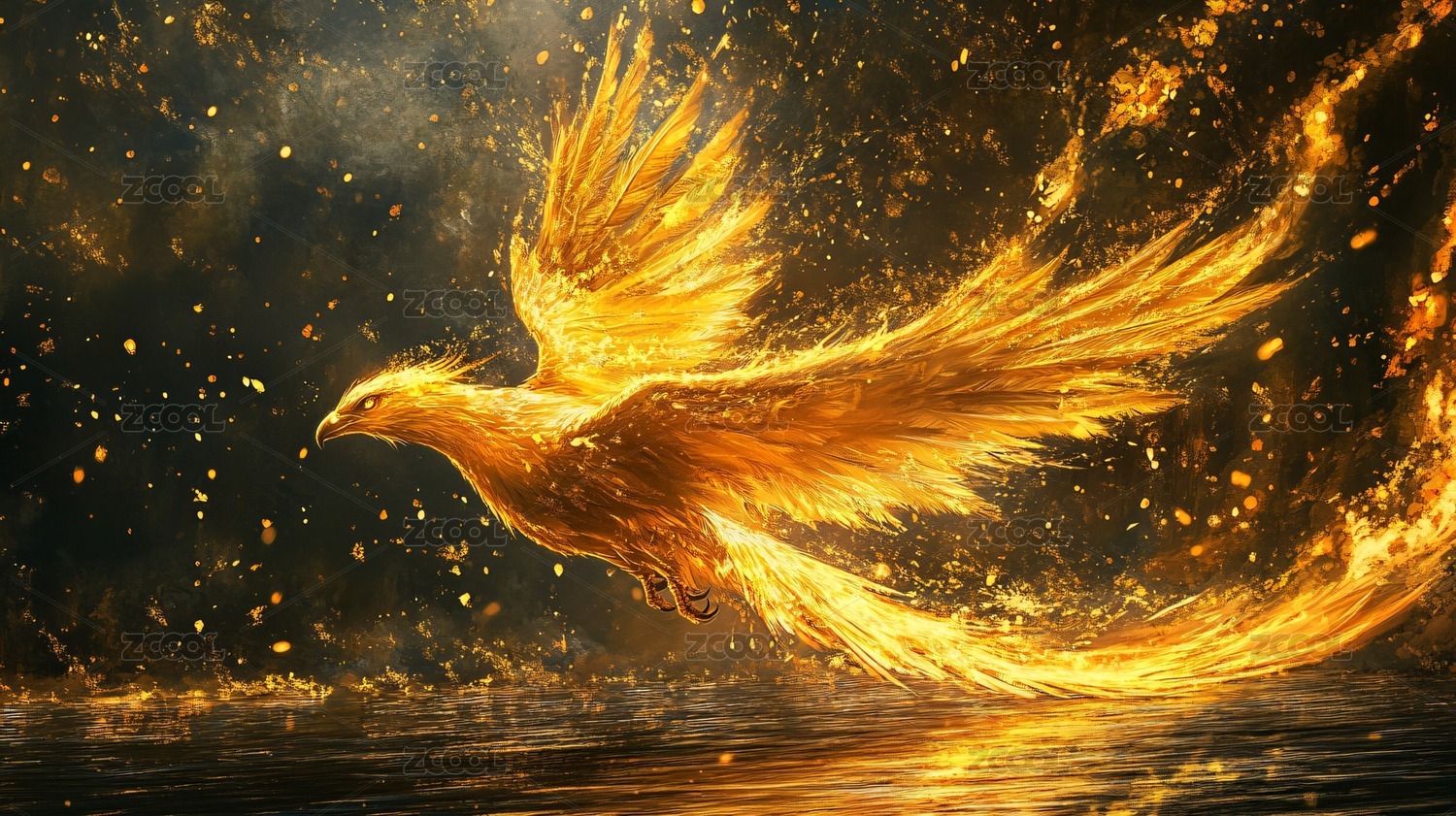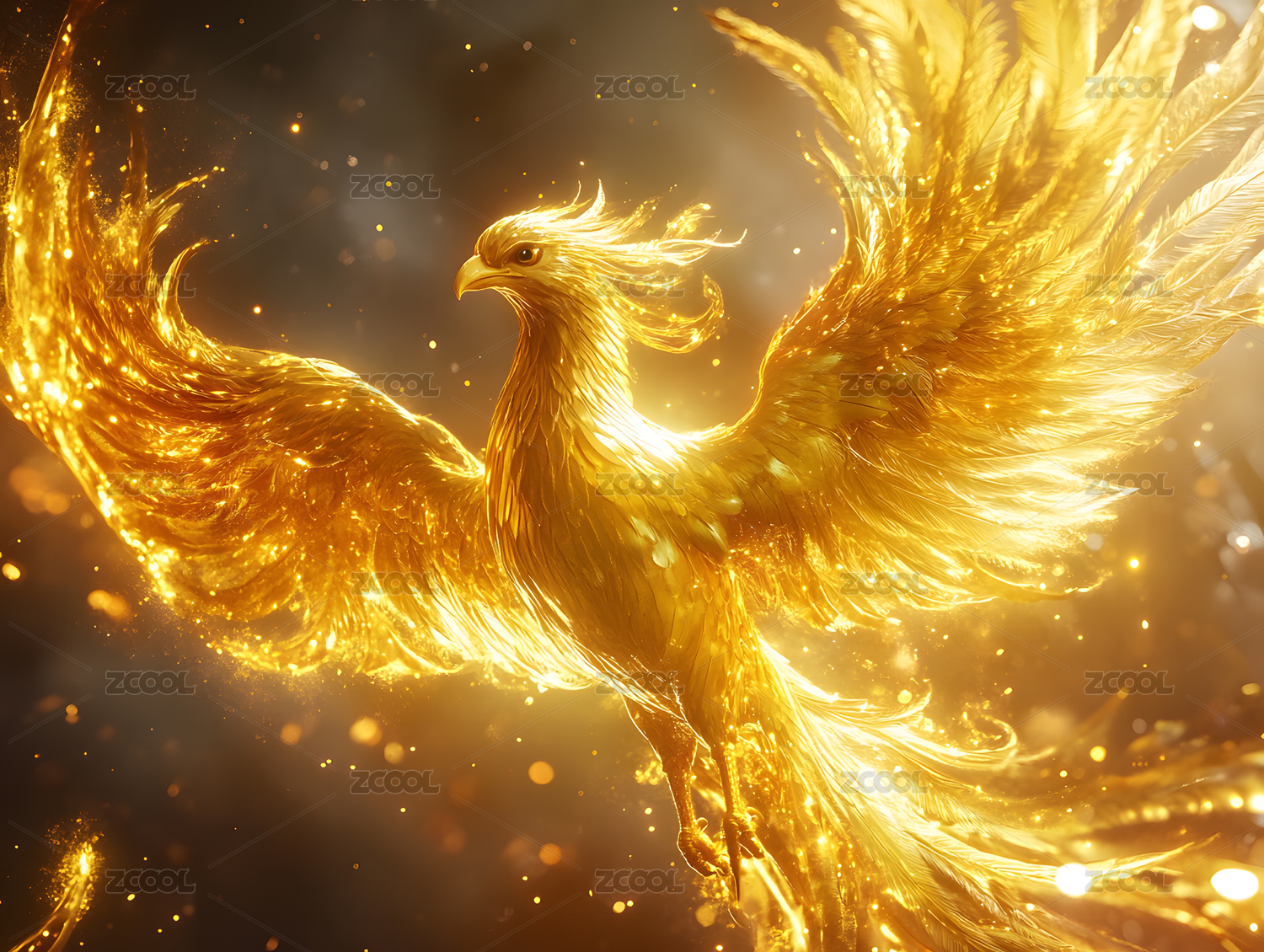 山海经神话传说天空飞翔火凤凰3D立体插画