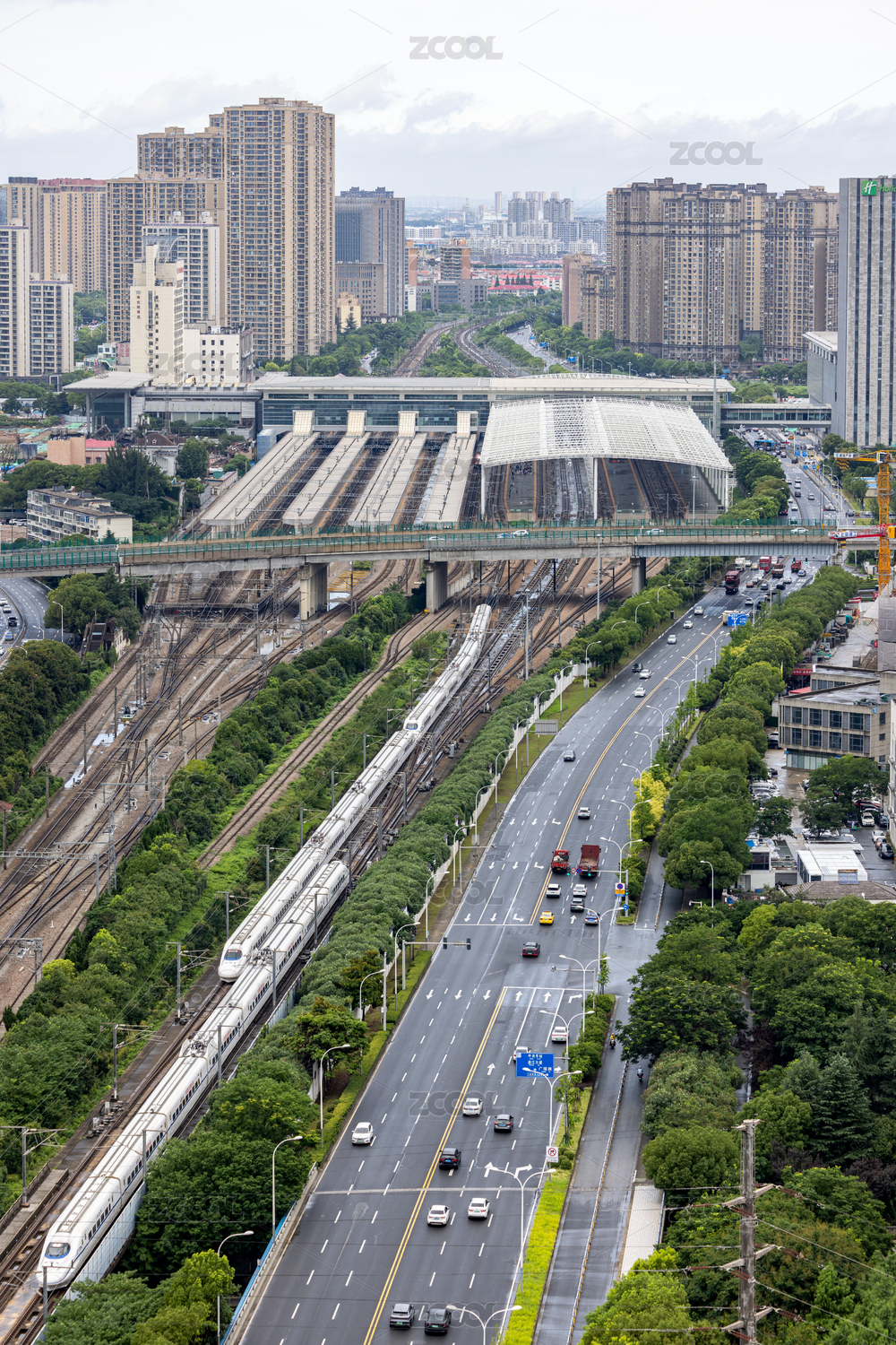 无锡市火车站复兴号和谐号高铁进站出站风光