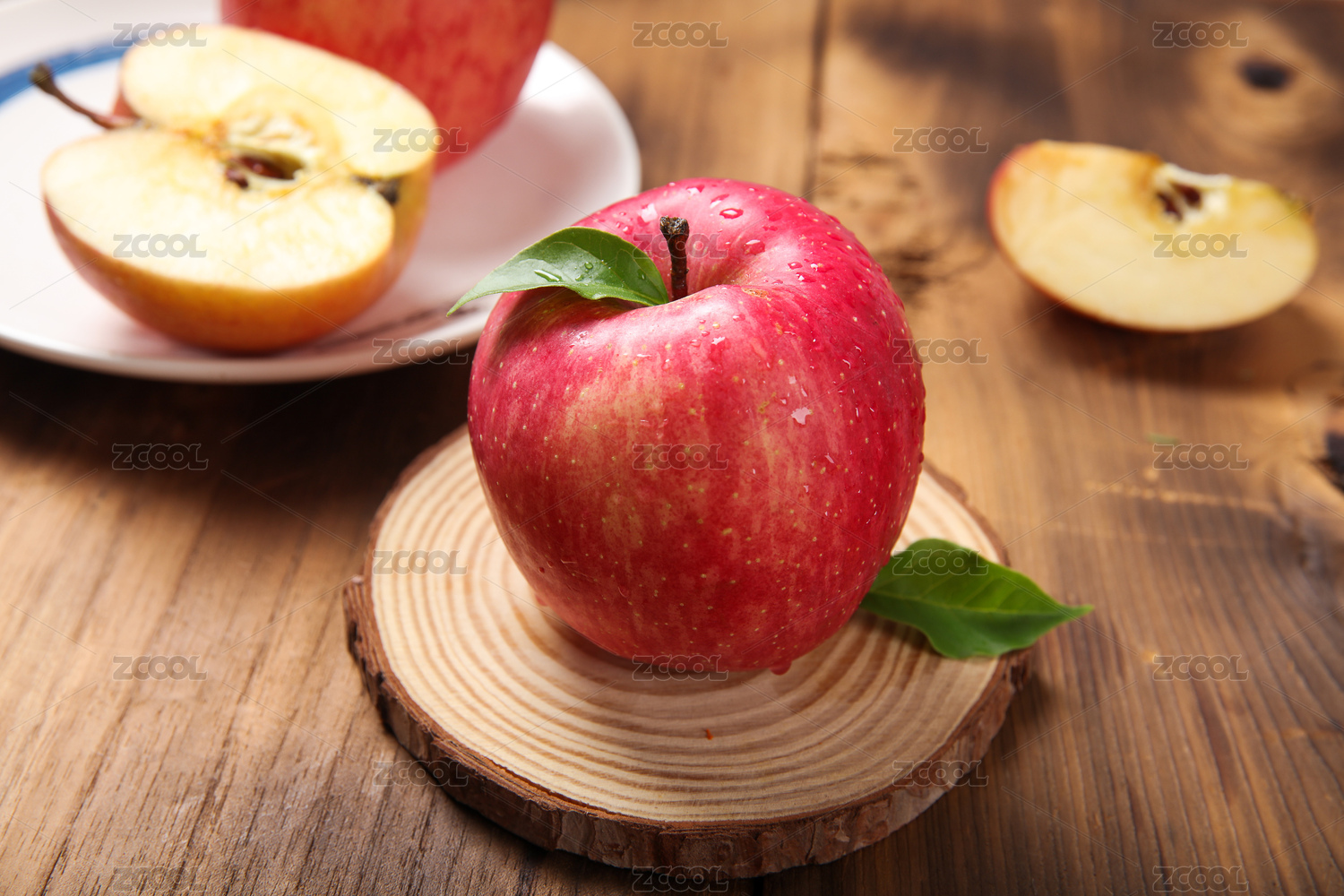 木底上放着红富士苹果