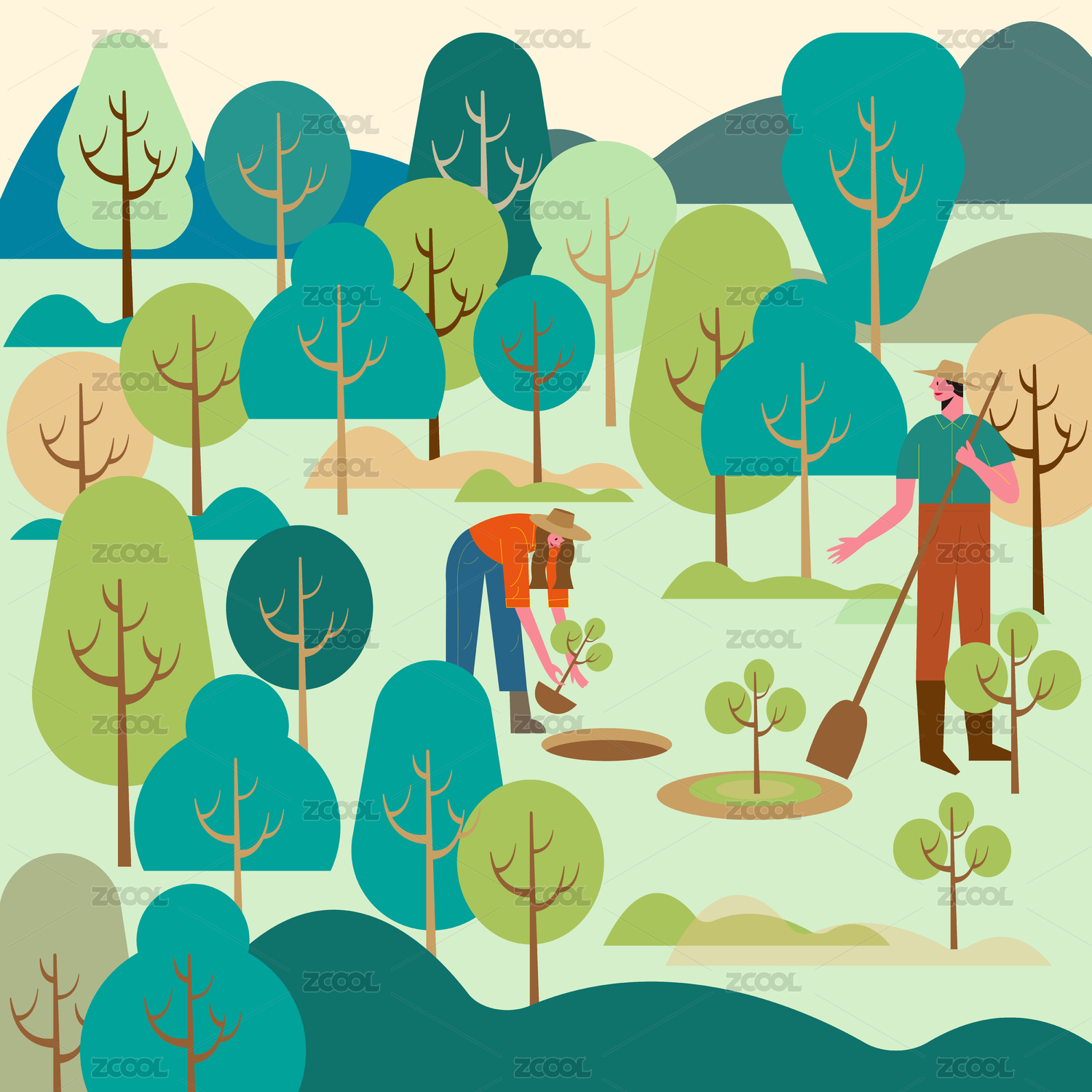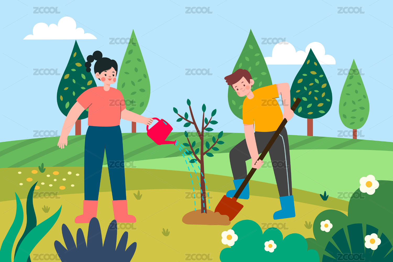 植树节,园艺,园丁,种植,花草,浇水,修剪,扁平风,环保,春天