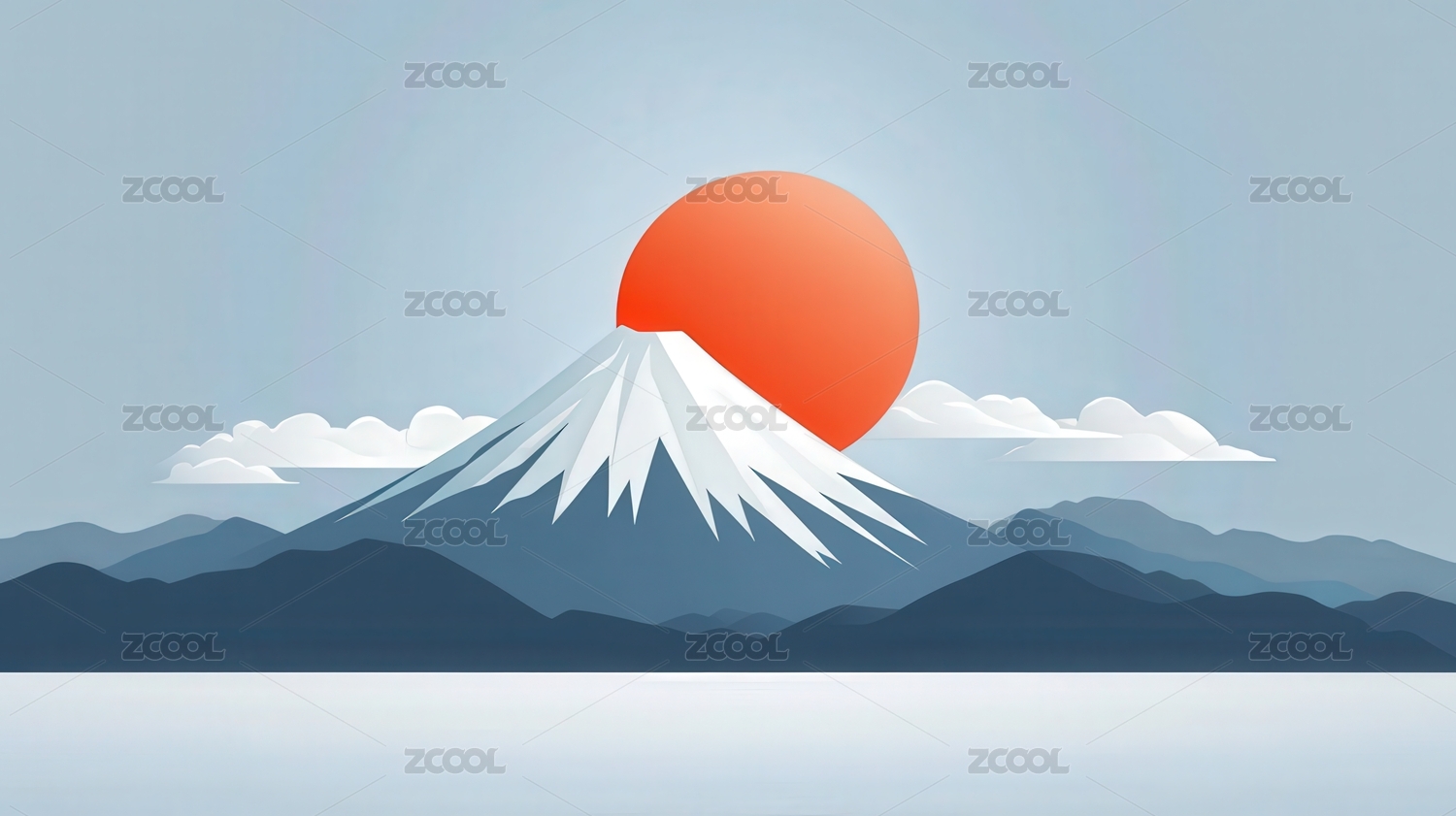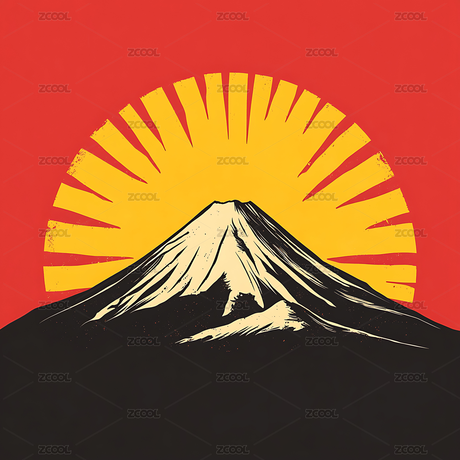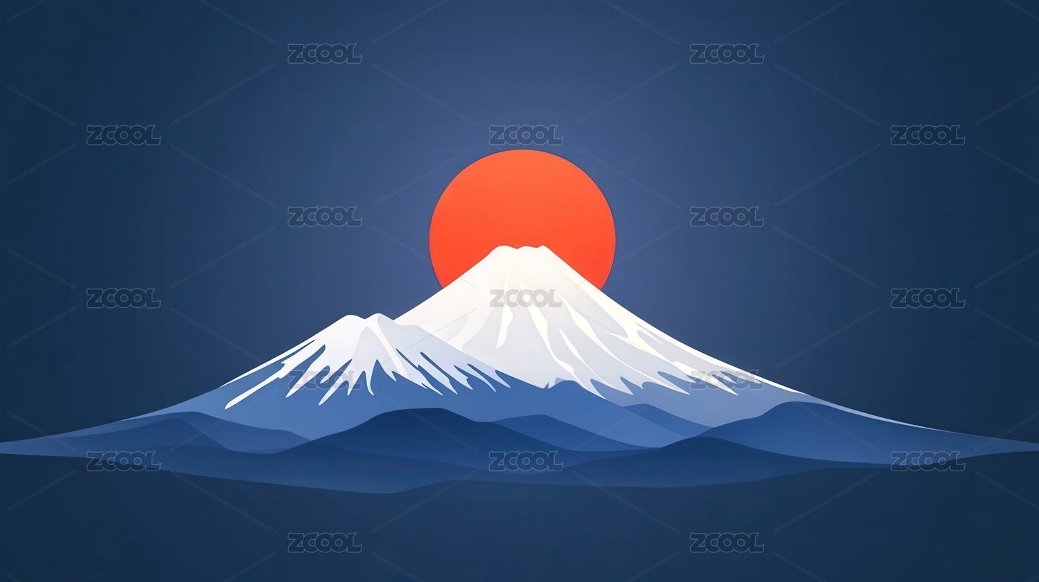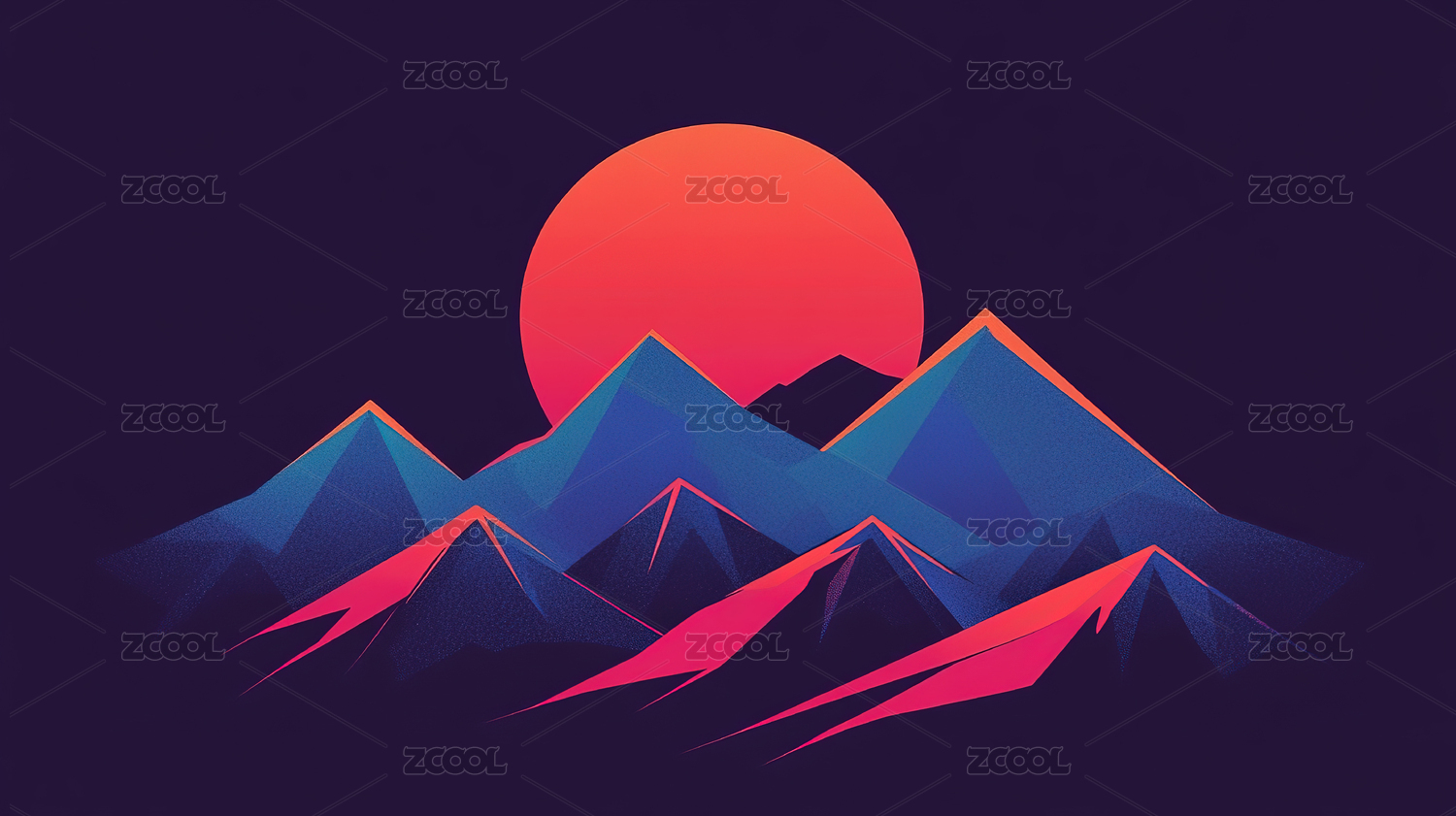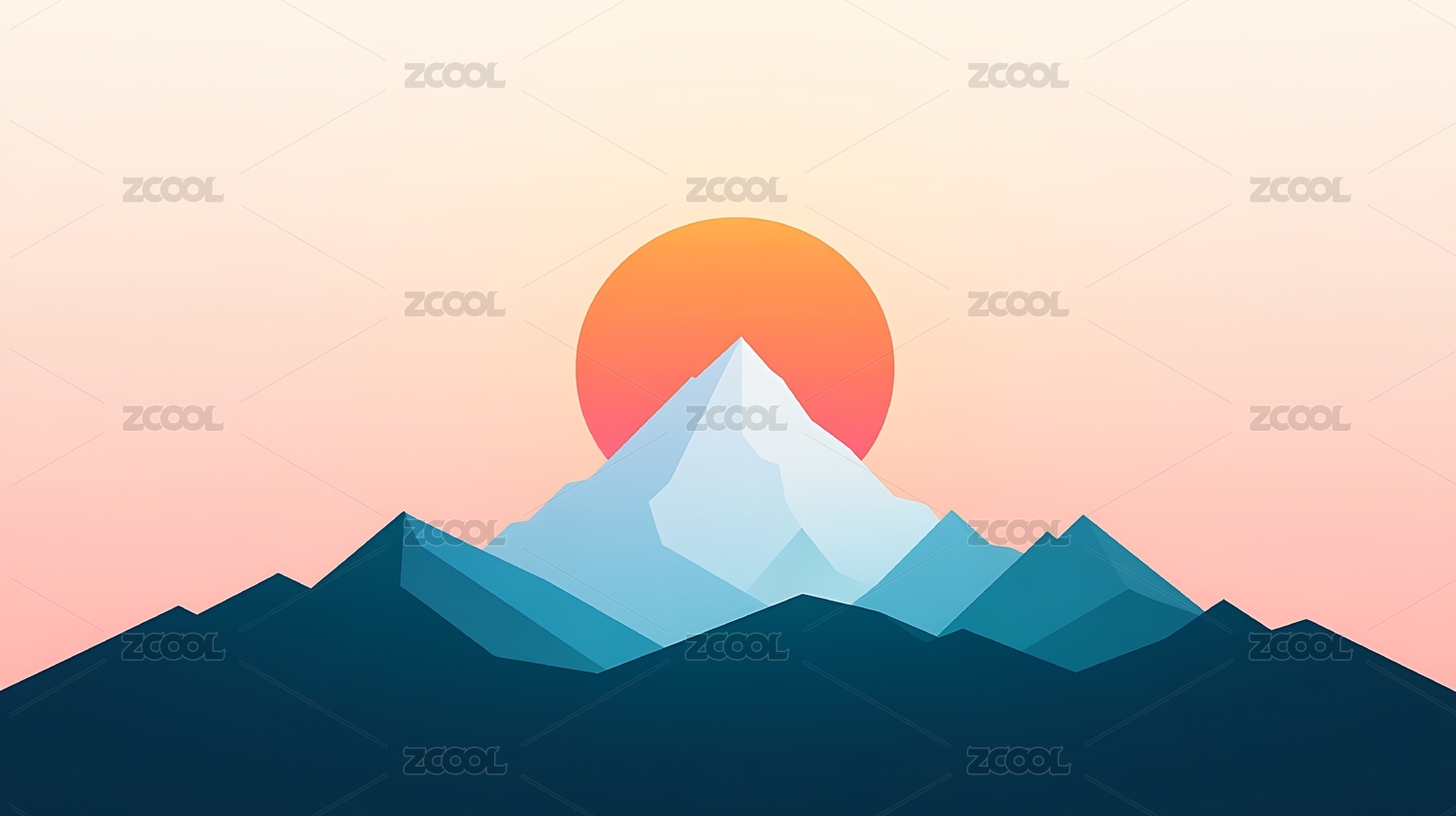 山,山峰,日出,太阳,日落,圆形,彩色,鲜艳,扁平,极简