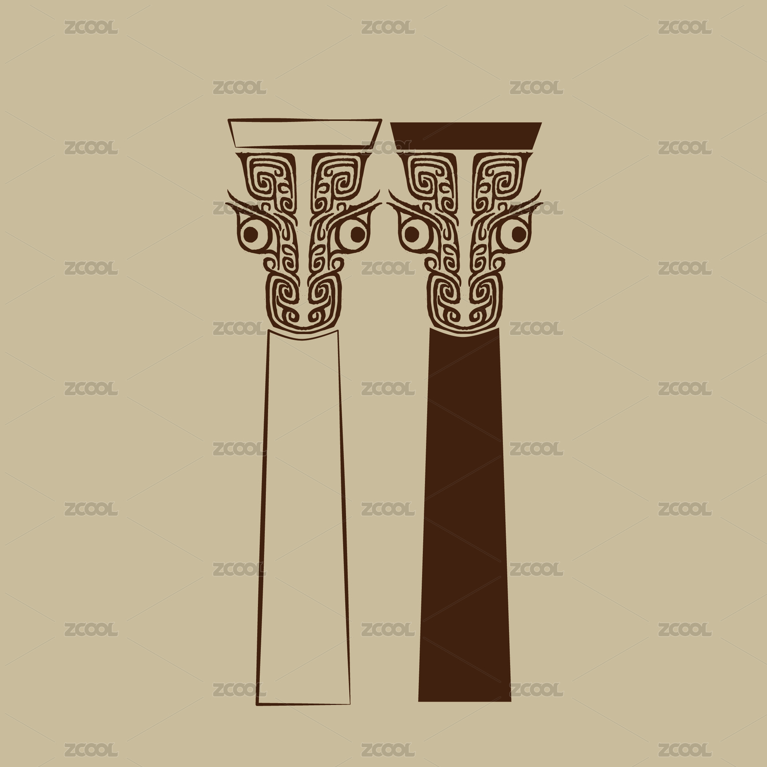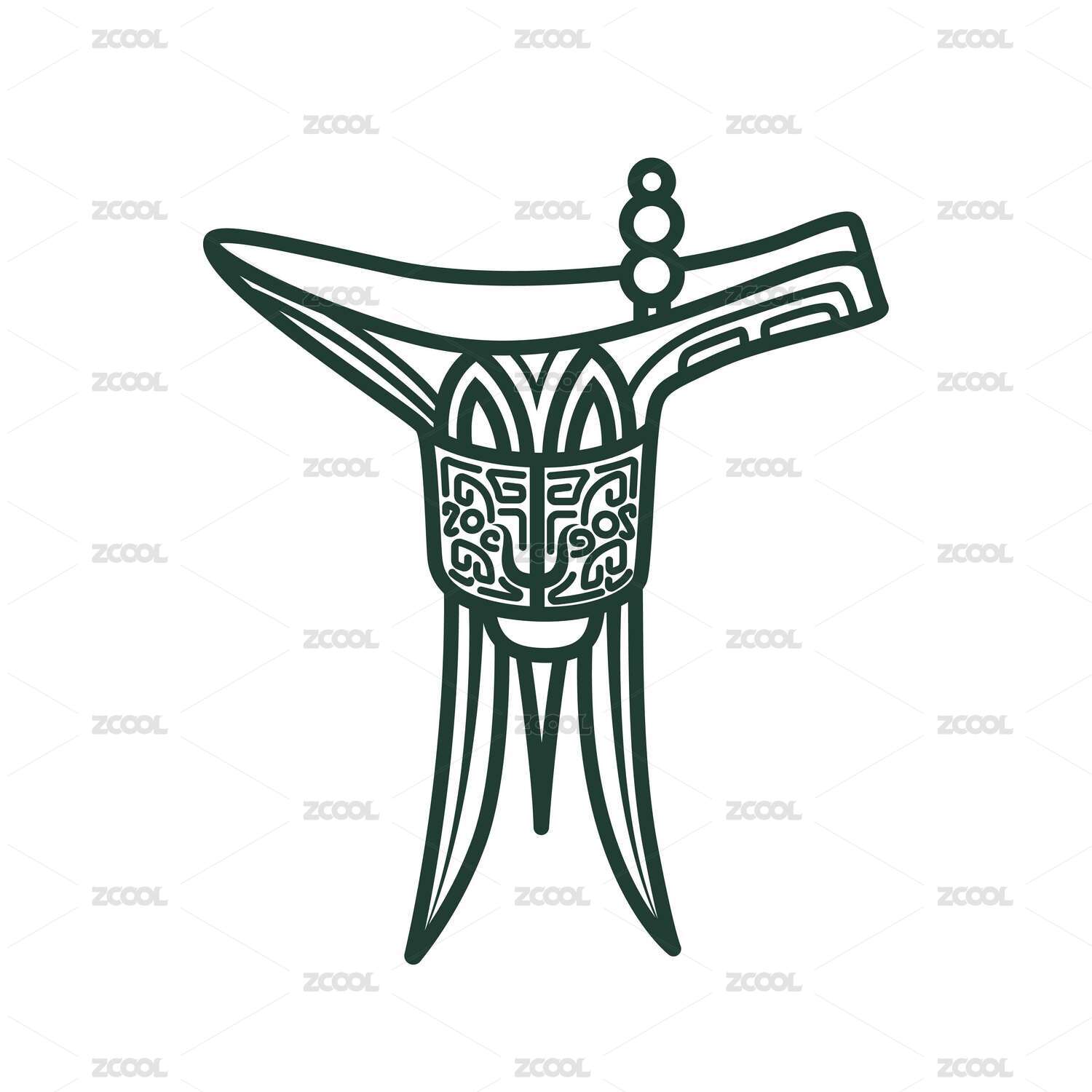中国风国潮青铜器青铜爵矢量手绘插画线稿