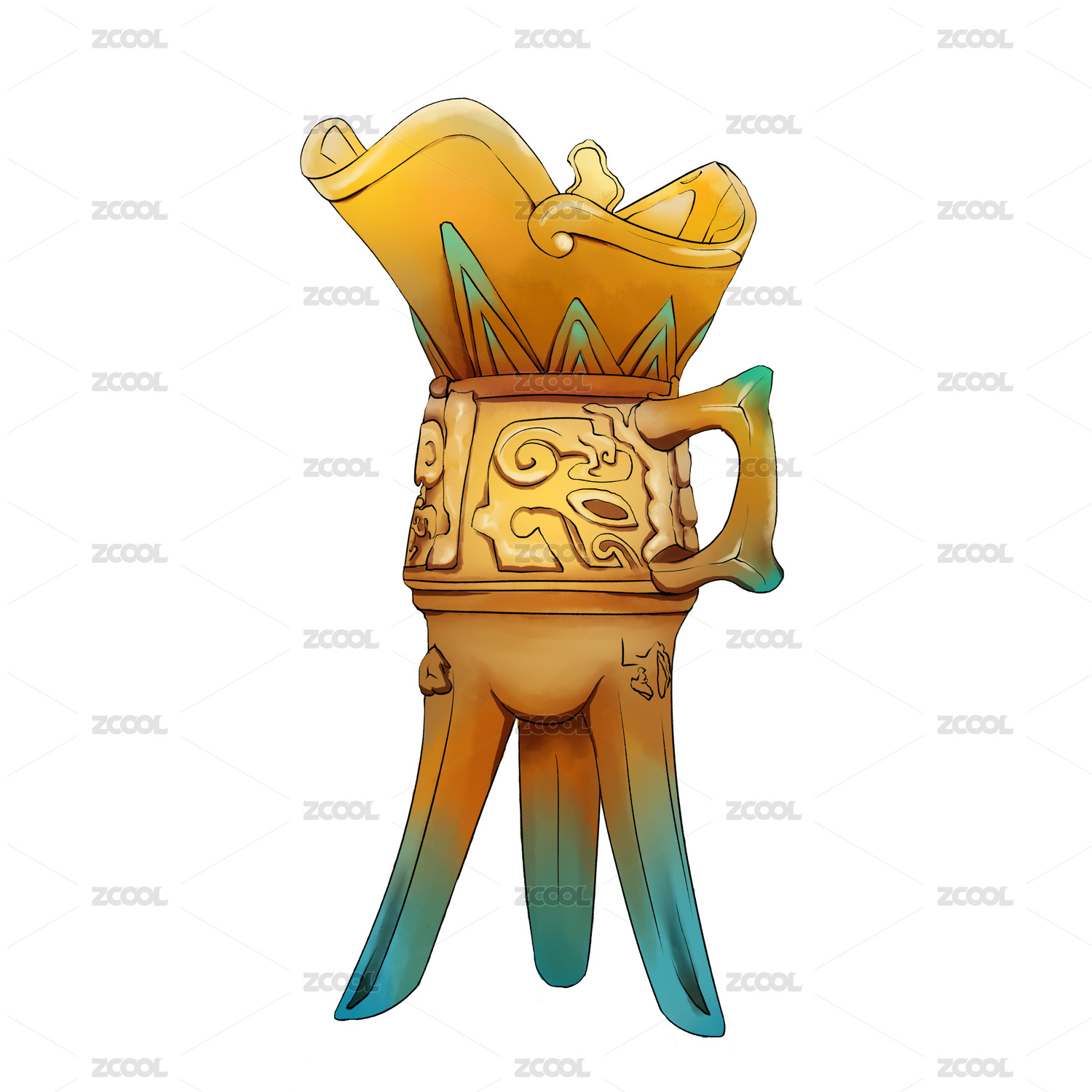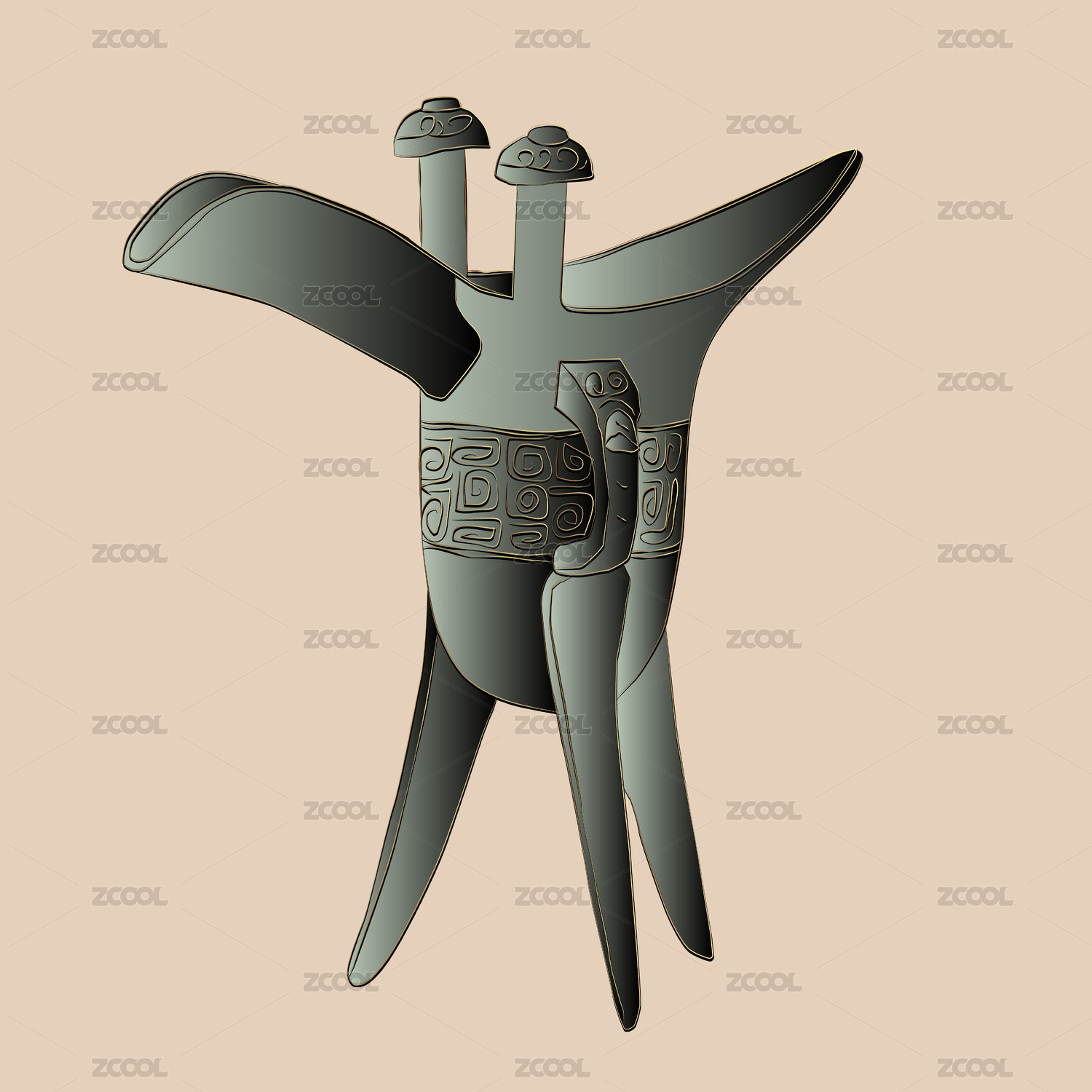 中国风国潮商朝青铜器青铜爵矢量手绘插画