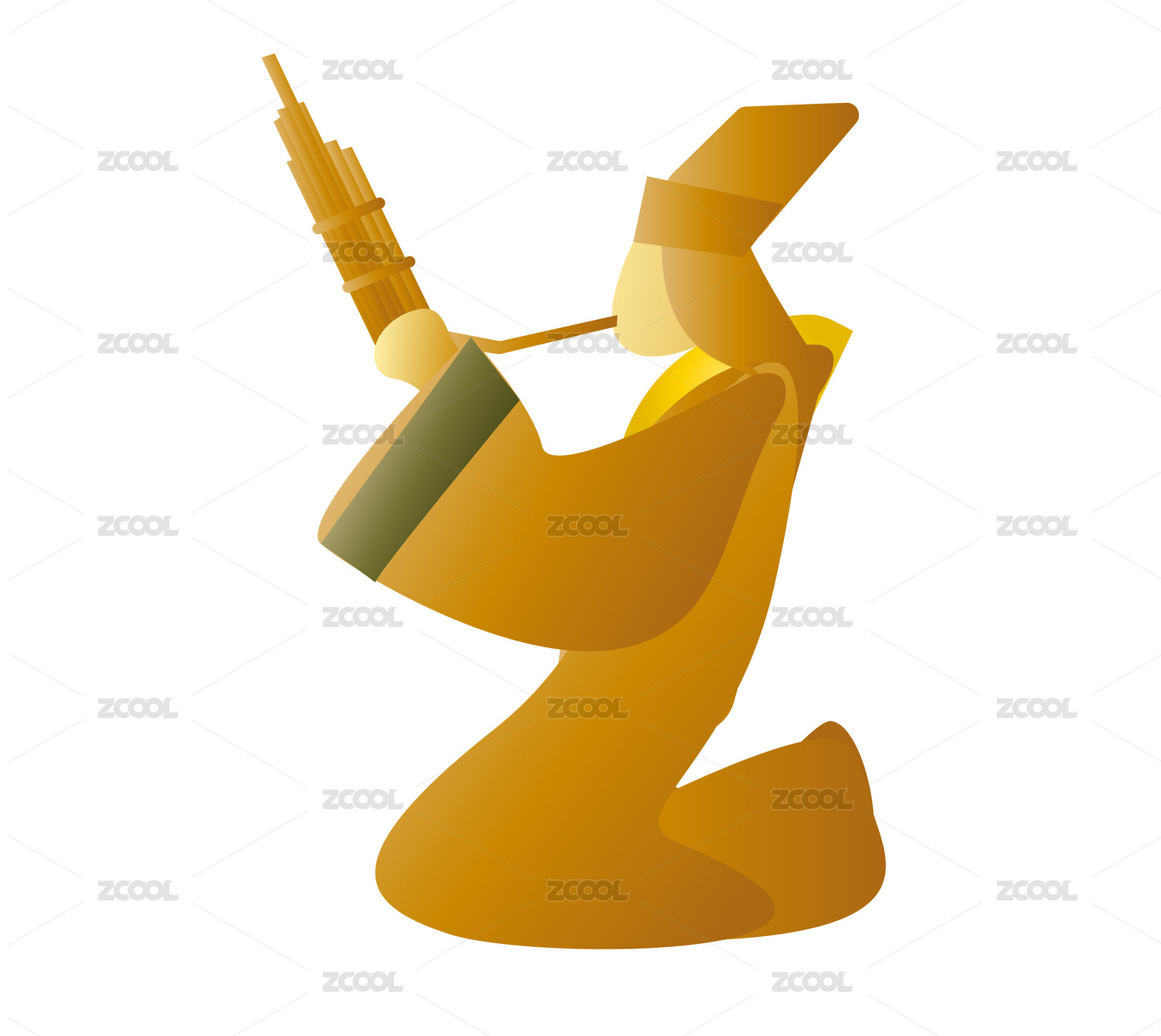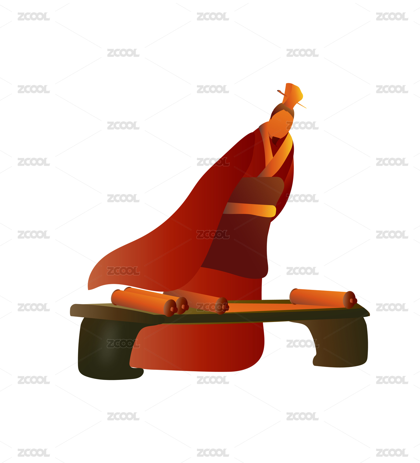古风青铜器爵创意童子比武剑客矢量手绘插画