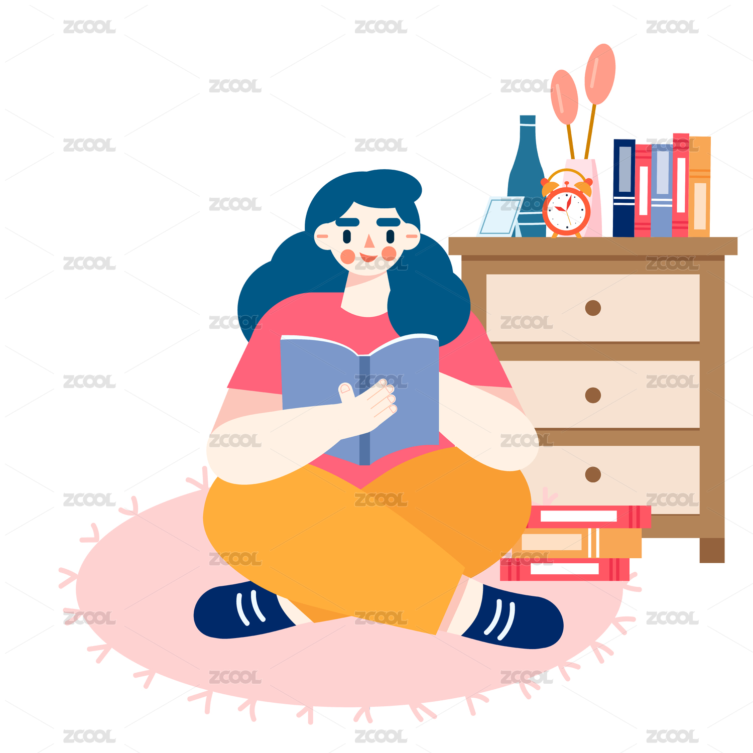 女生看书扁平插画