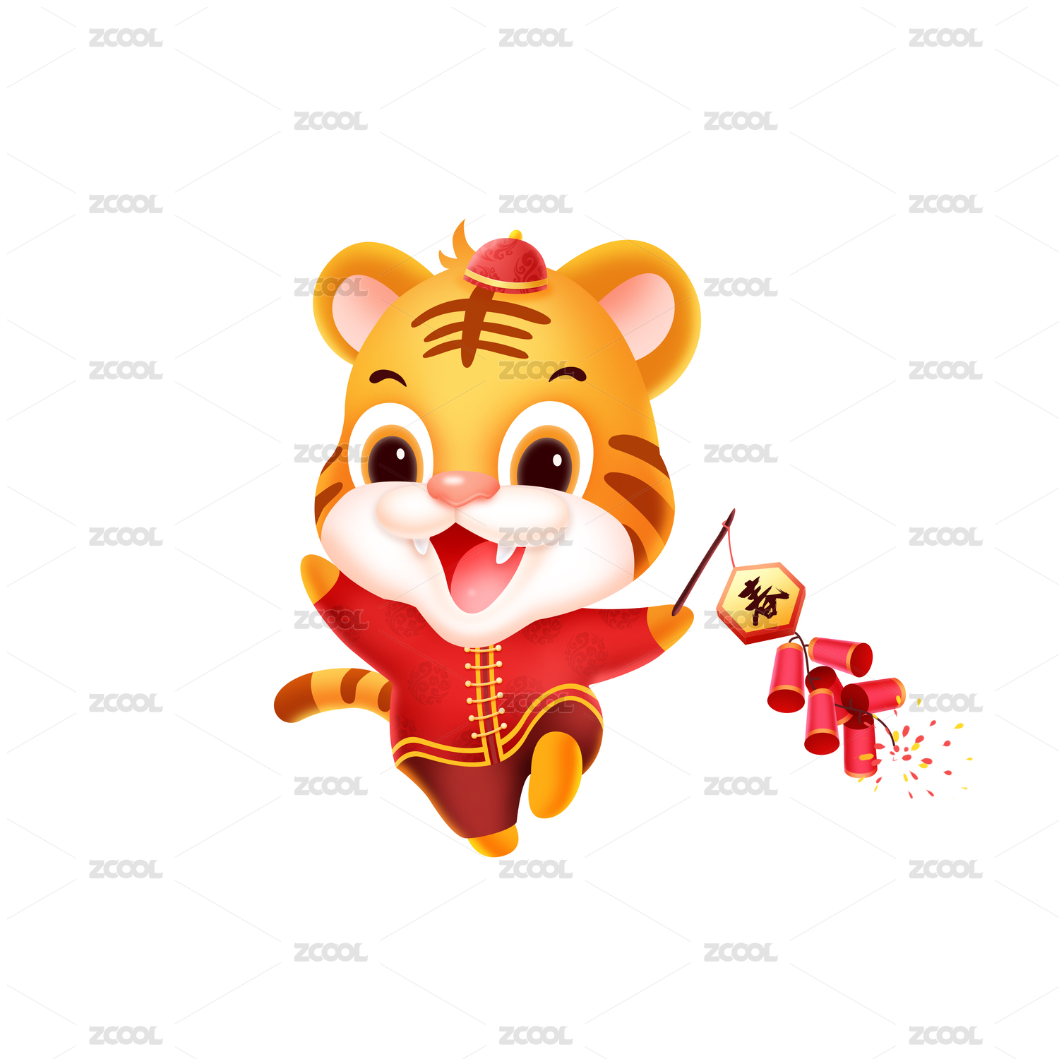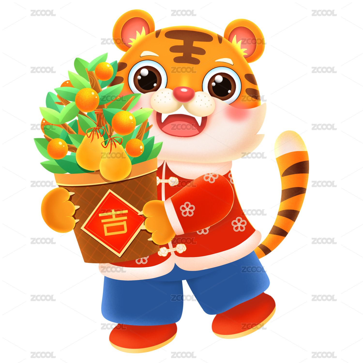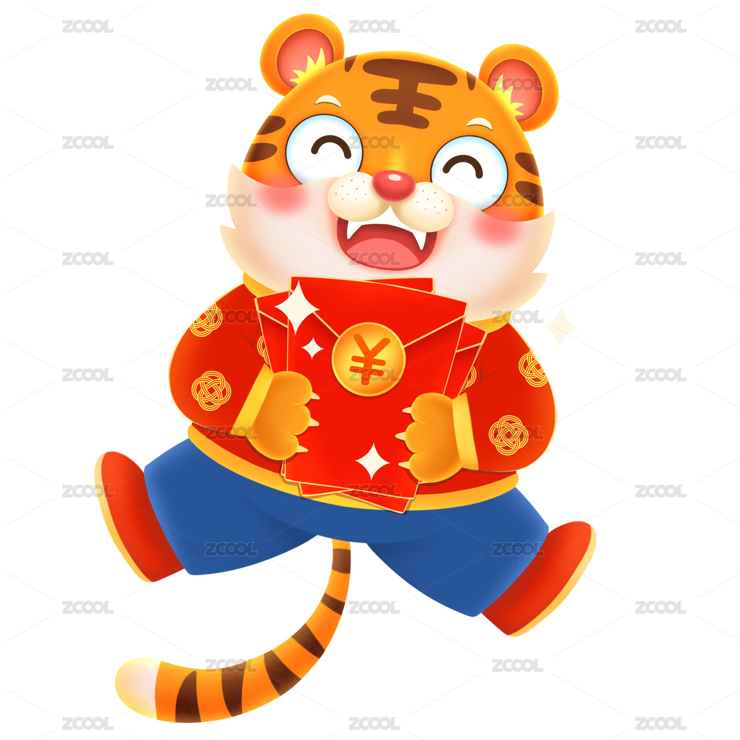 国潮新年春节虎年可爱老虎抱灯笼元素