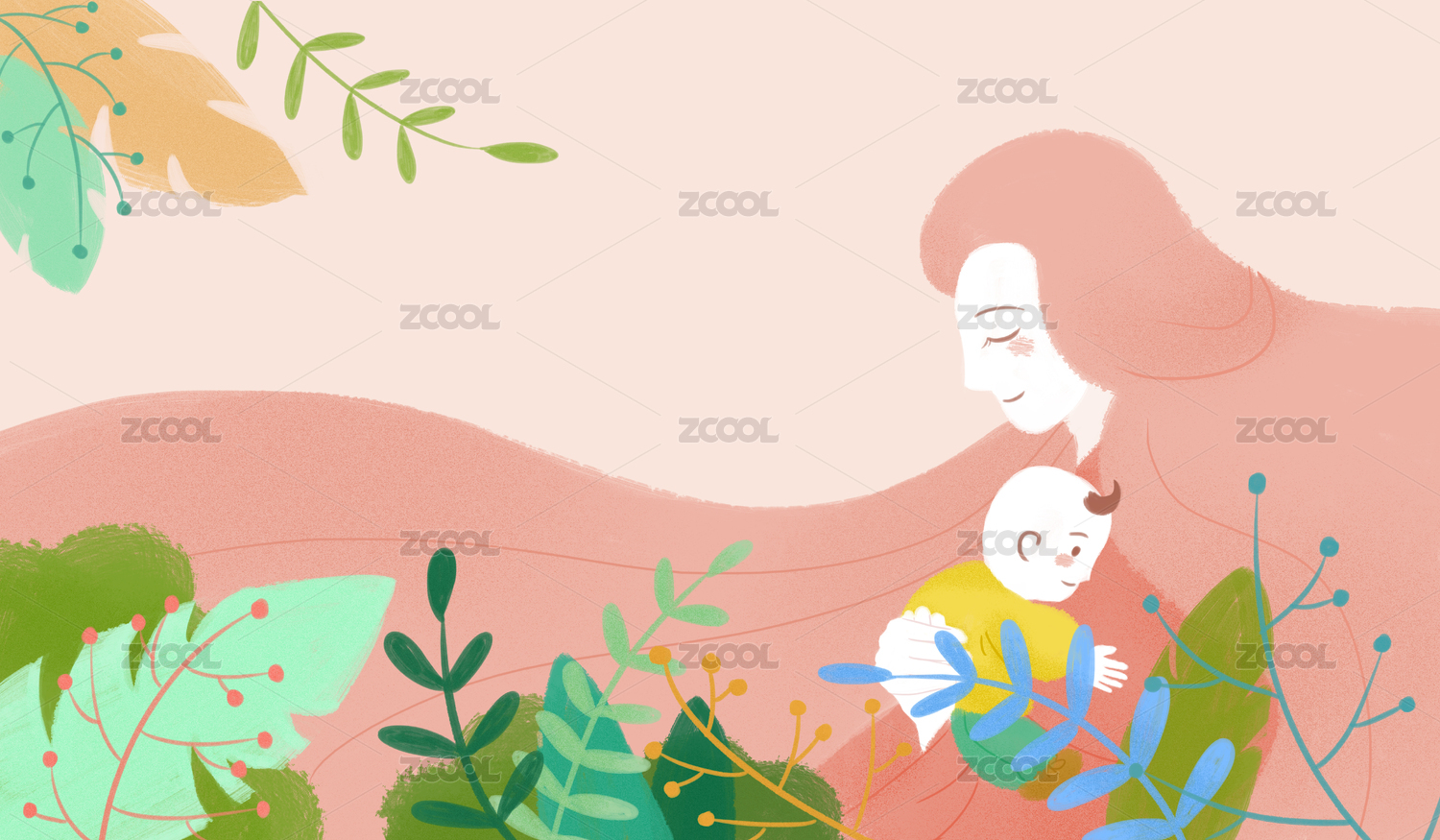 母亲节妈妈抱着婴儿萌宝插画矢量图