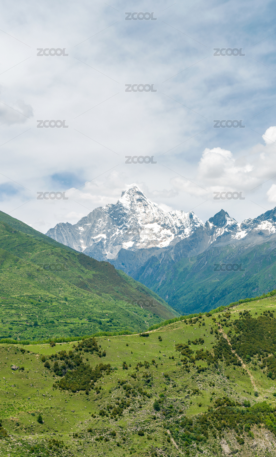 四川小金县四姑娘山景区幺妹峰大峰夏季蓝天