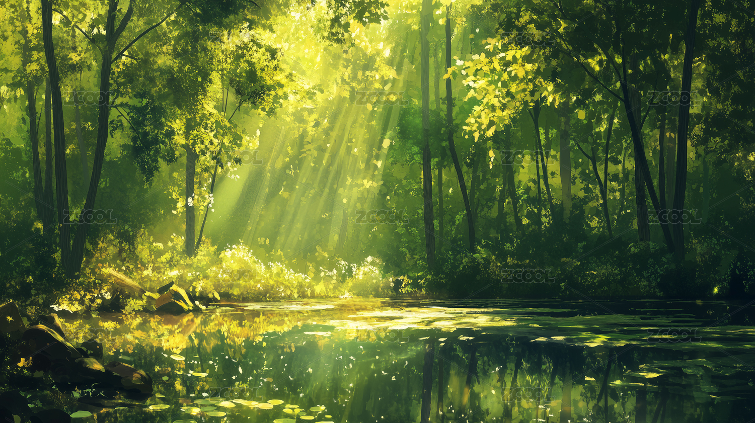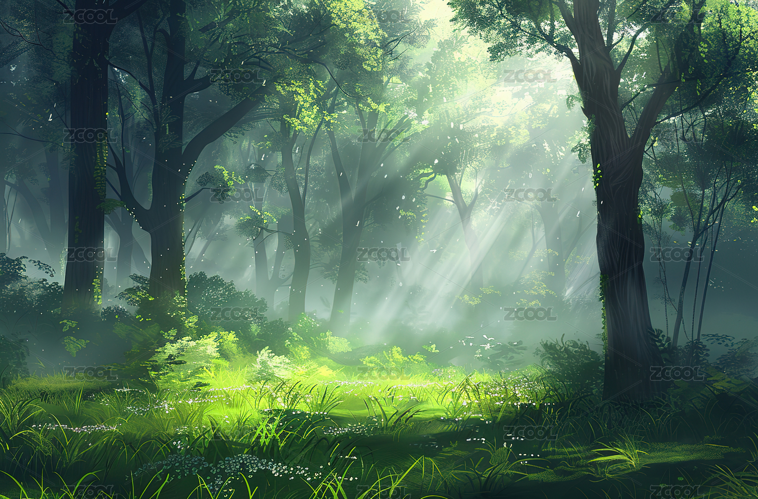 日漫风景森林阳光插画