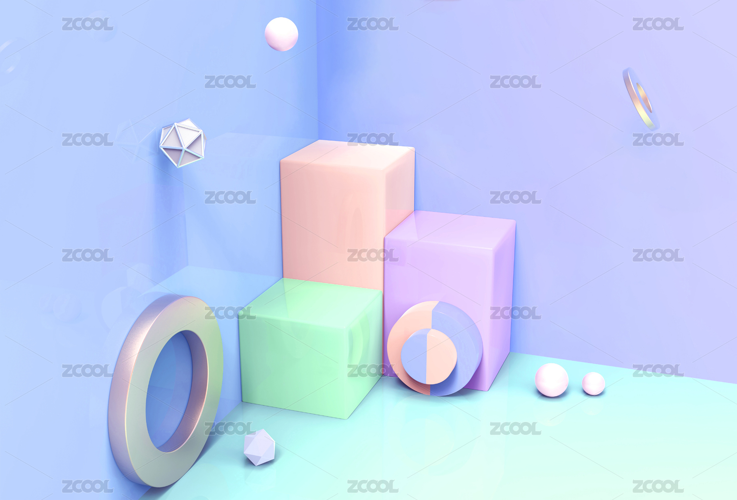 渐变粉蓝立体几何背景